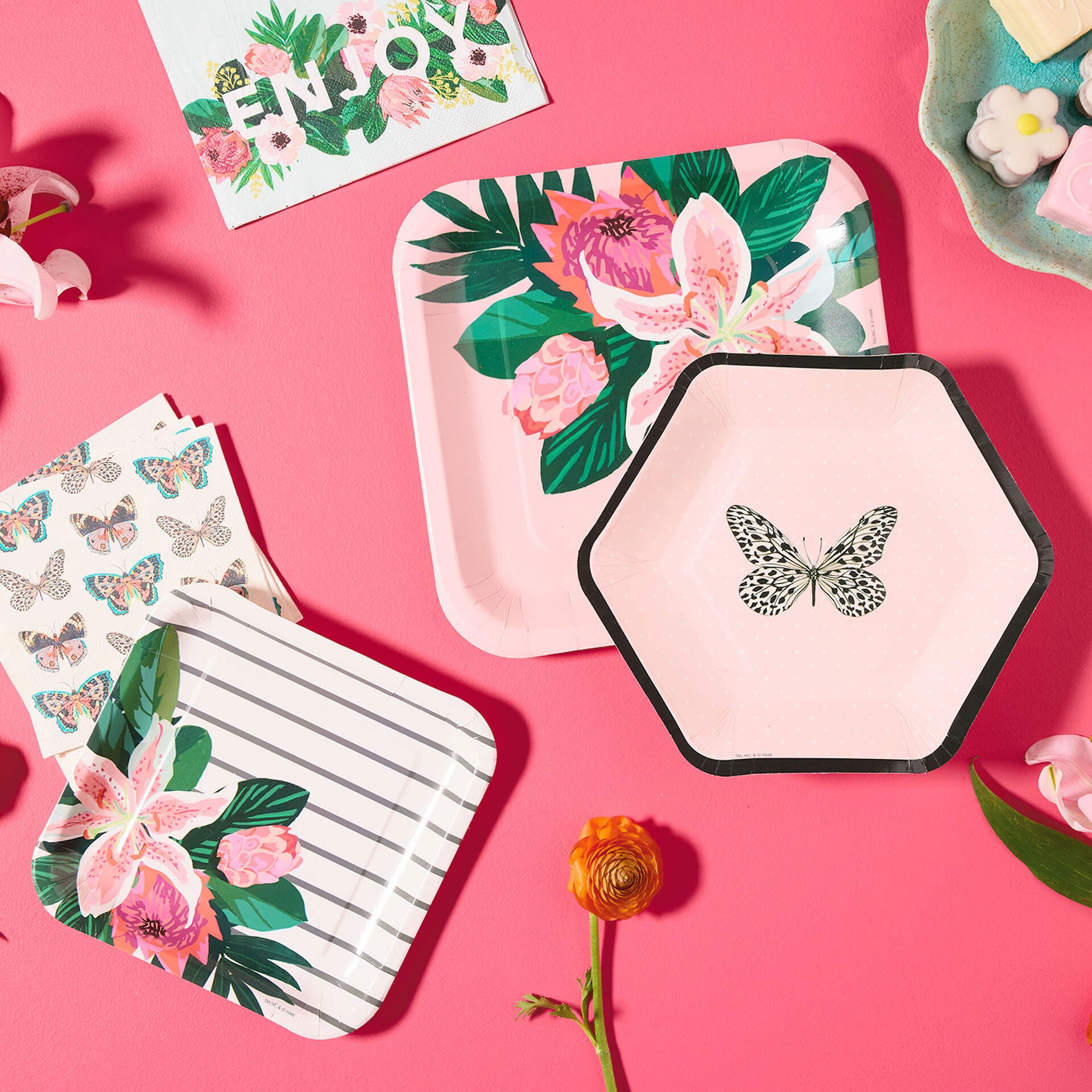 Lily Bouquet on Pink Square Dinner Plates, Set of 8【ペーパープレート小|紙皿 1柄8枚入り/Hallmark Celebrate!】