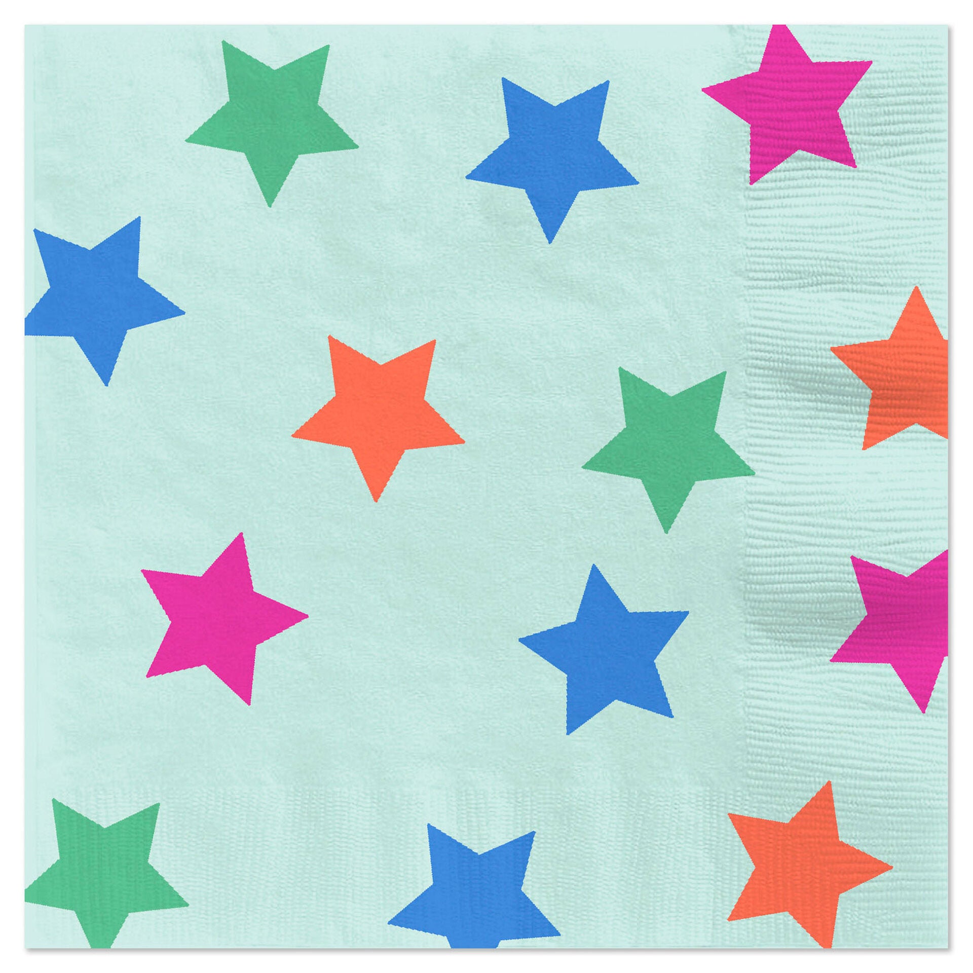 Colorful Stars on Aqua Dinner Napkins, Set of 16【ペーパーナプキン大 1柄16枚入り/Hallmark Celebrate!】