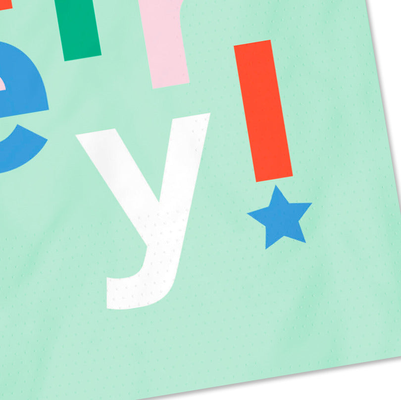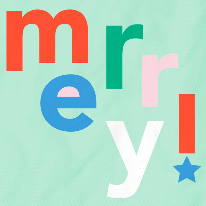 「merry」の文字が印象的な、キュートなホールマークカクテルナプキンで、陽気な気分を盛り上げましょう。ミントグリーンのペーパーナプキンには、ホリデーカラーのマルチカラーレタリングが施されています。
