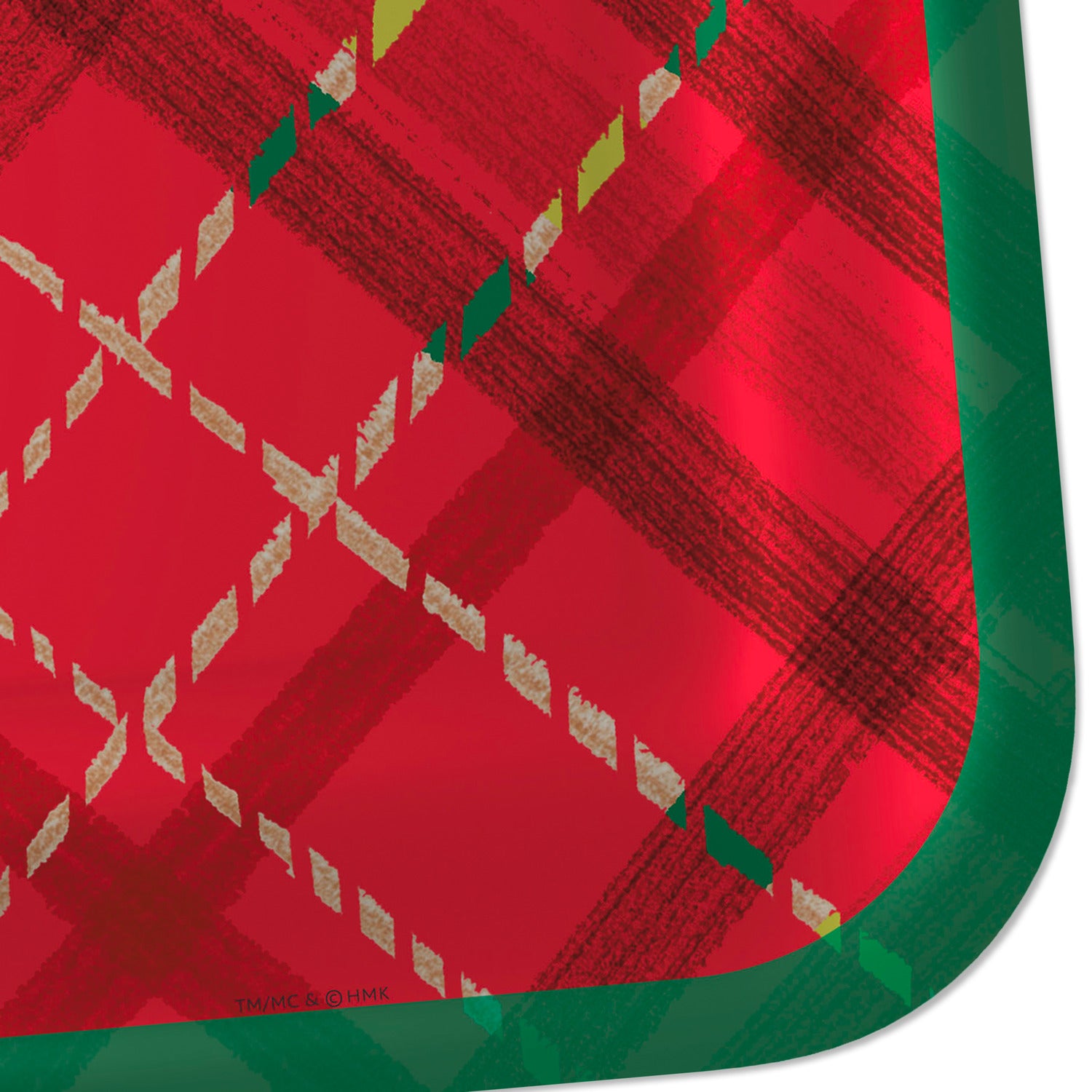ホールマークの赤いチェック柄のディナープレートで、テーブルやビュッフェに陽気な雰囲気を。赤いチェック柄の正方形の紙皿は、グリーンの縁取りでチャーミングさをプラス。