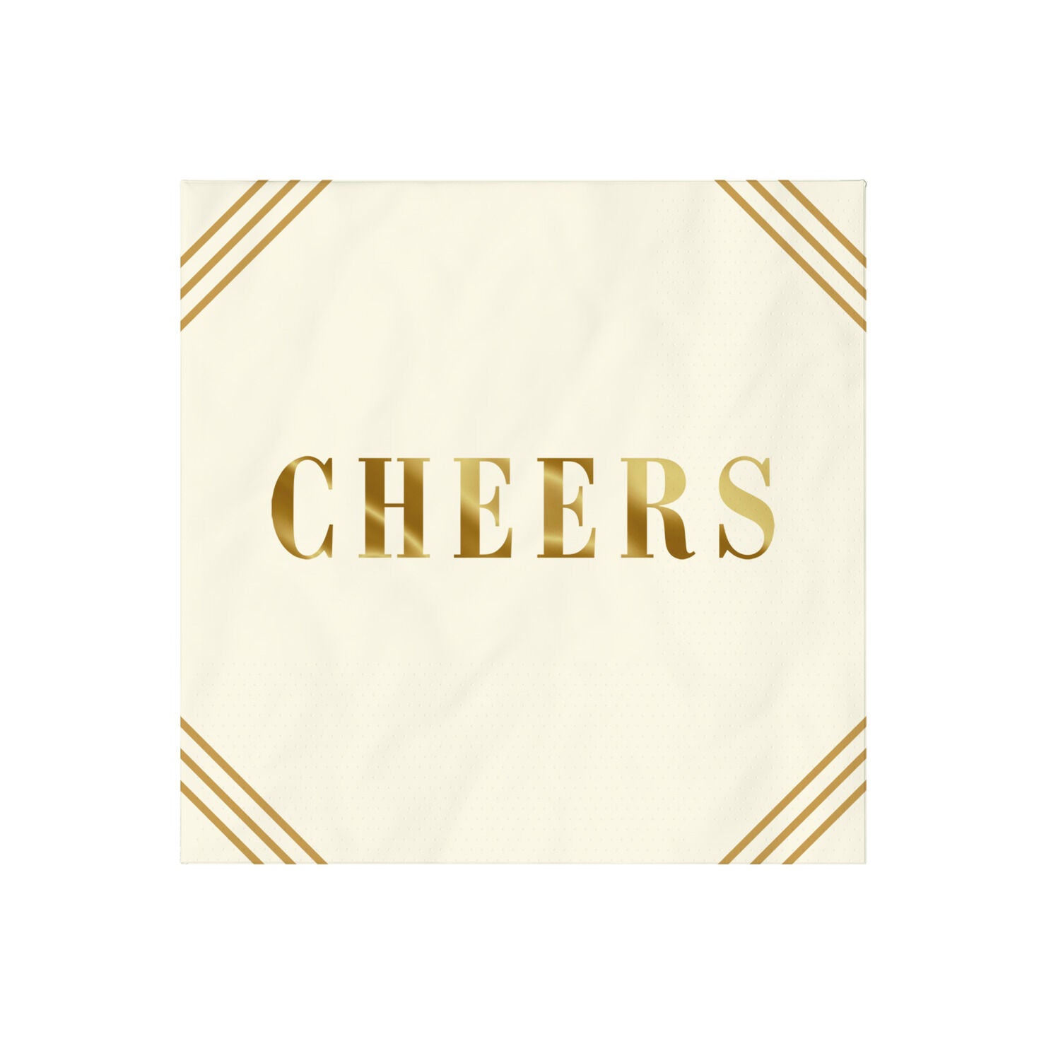 主賓の乾杯のためにグラスを持ち上げるとき、このアイボリーの高級ナプキンがゴールドの箔文字とコーナーストライプのアクセントでその気持ちを伝えます。お誕生日や記念日、退職パーティーなどに最適なカクテルナプキンです。