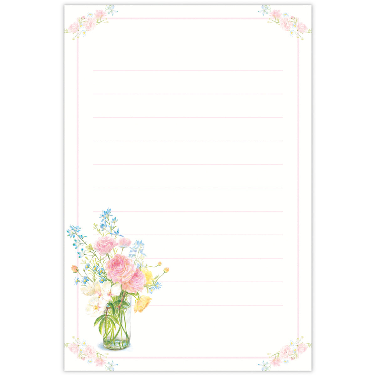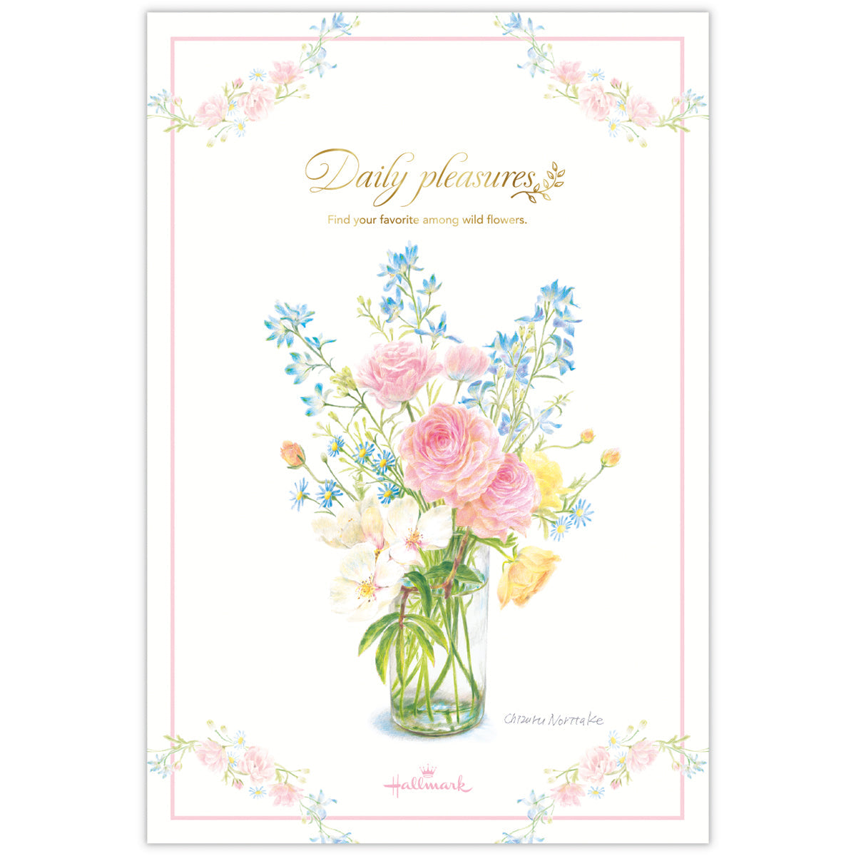 色鉛筆アーティスト・則武千鶴(のりたけちづる)が描く、繊細で奥深いアートが目を引くデザイン。花瓶に生けられた花のように、日々のお手紙を華やかに彩ってくれます。