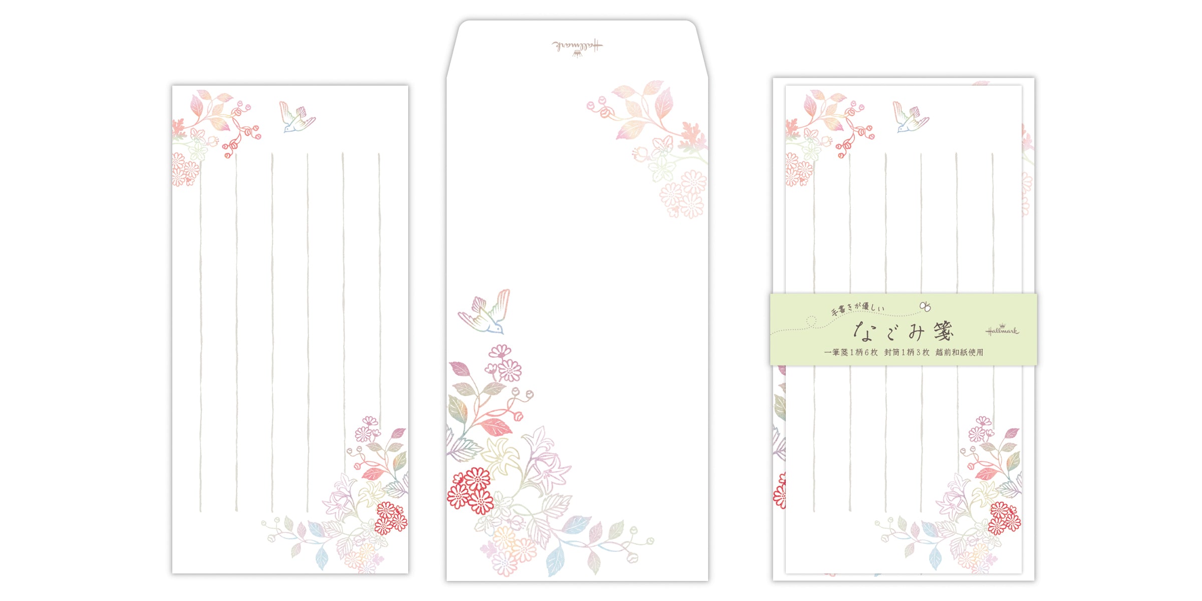 ちょっとしたお手紙に丁度いい一筆箋サイズのレターセット。添え書きにきちんと感を出したいときや、ギフトを贈る際の添え状、お札用のポチ袋としてもおすすめ! 細い線で繊細に描かれた花や鳥が美しい、上品な和風デザインです。越前和紙使用。