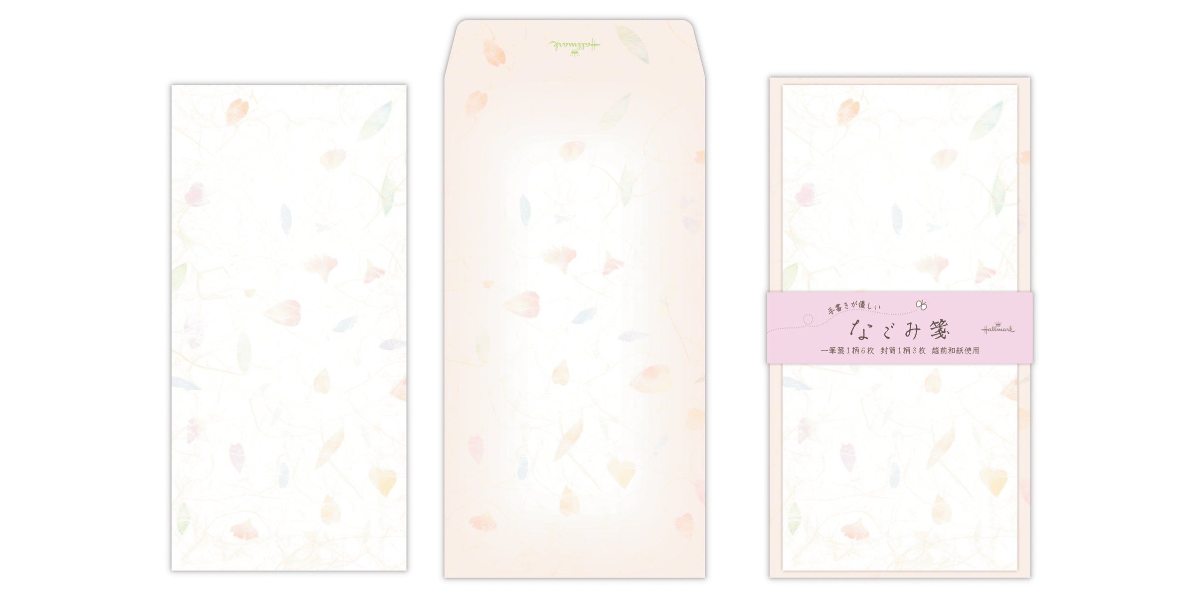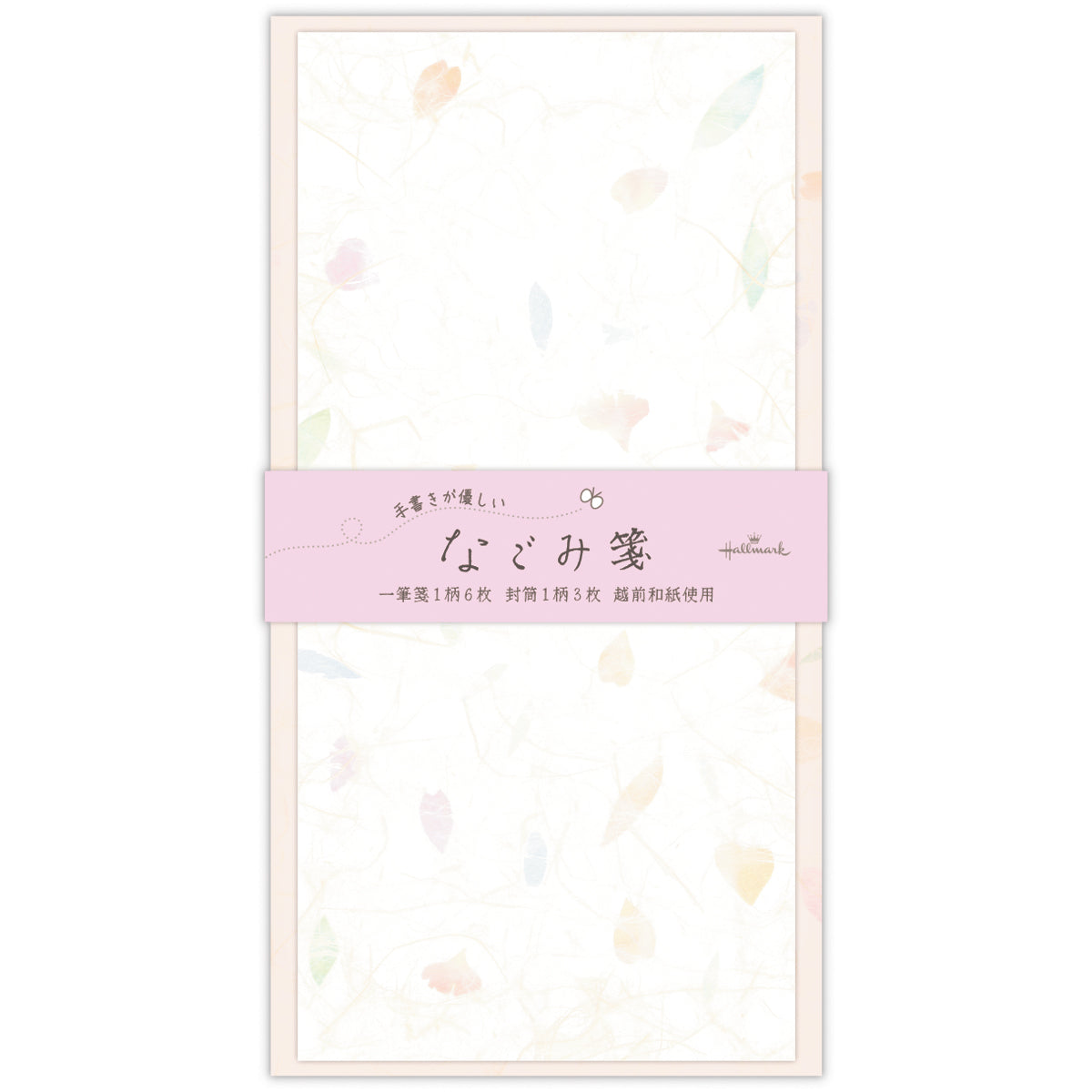 ちょっとしたお手紙に丁度いい一筆箋サイズのレターセット。添え書きにきちんと感を出したいときや、ギフトを贈る際の添え状、お札用のポチ袋としてもおすすめ! 色とりどりの花びらを漉き込んだ和紙をイメージした、可愛らしい和風デザインです。越前和紙使用。