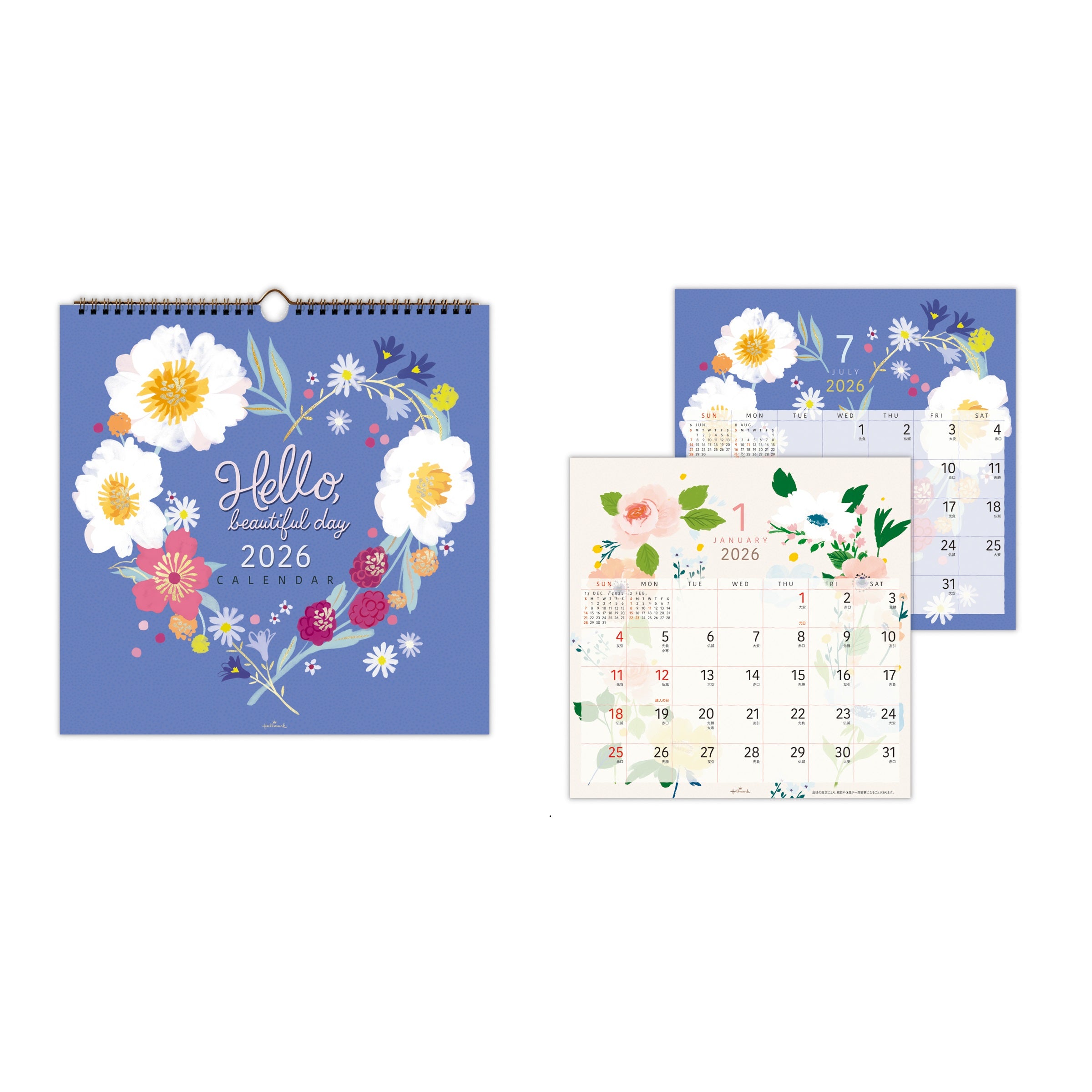 「フラワーアートを楽しむ一年」をテーマに、インテリア感覚でお部屋に飾りたくなるお花のデザイン。小さなブーケがちりばめられている月があったり、大きなリースを飾る月があったりと、さまざまなお花を楽しめます。日付が見やすい大きなサイズの壁掛けタイプです。