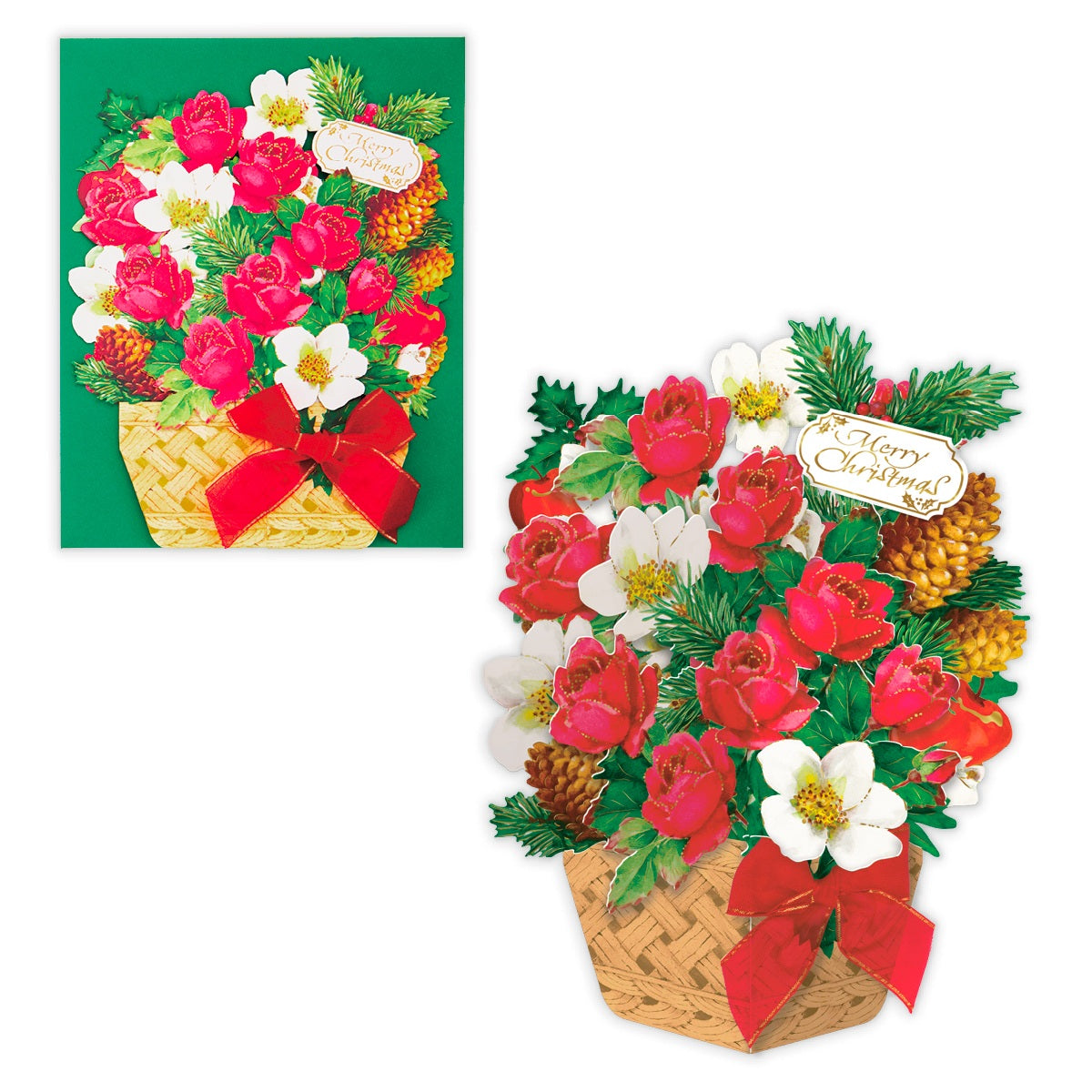 立てて飾れる クリスマスフラワーアレンジメント【立体クリスマスカード】