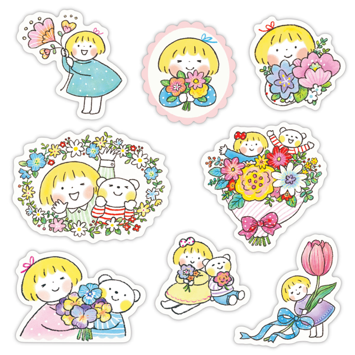はるちゃんとふうくん お花【フレークシール/仲良しともだち】