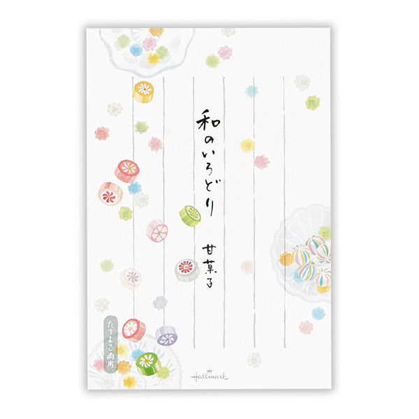 和のいろどり甘菓子II【ハガキ箋|タテ罫線|2柄8枚/和のいろどり/おのみちこ】