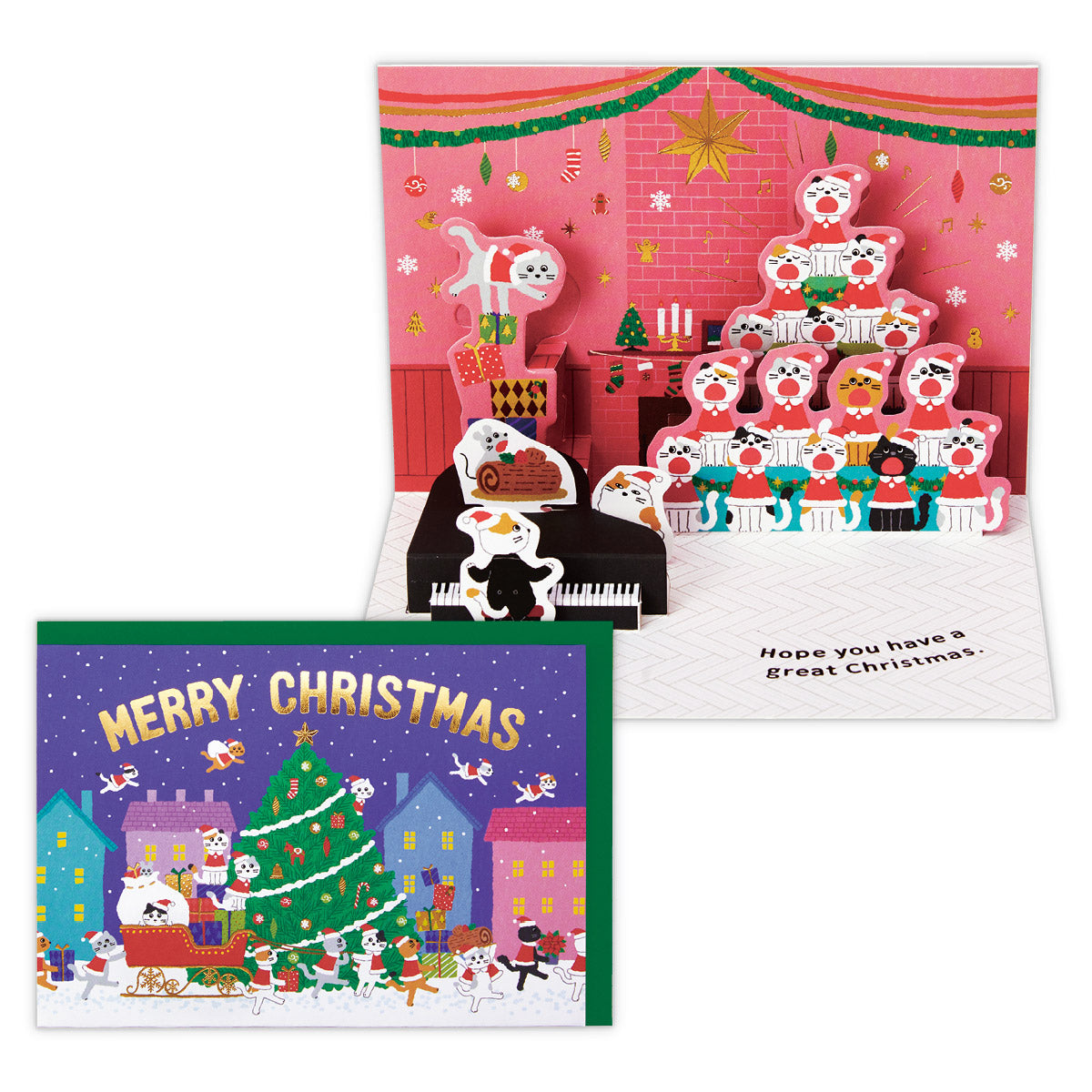 ネコ クリスマス音楽会【立体クリスマスカード】