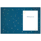 色使いやタッチ、さりげない加工に個性が光る海外デザインカード。大きな月と夜空を駆けるサンタクロースが印象的なデザインです。箔加工とエンボス加工で夜空の美しさを表現しました。