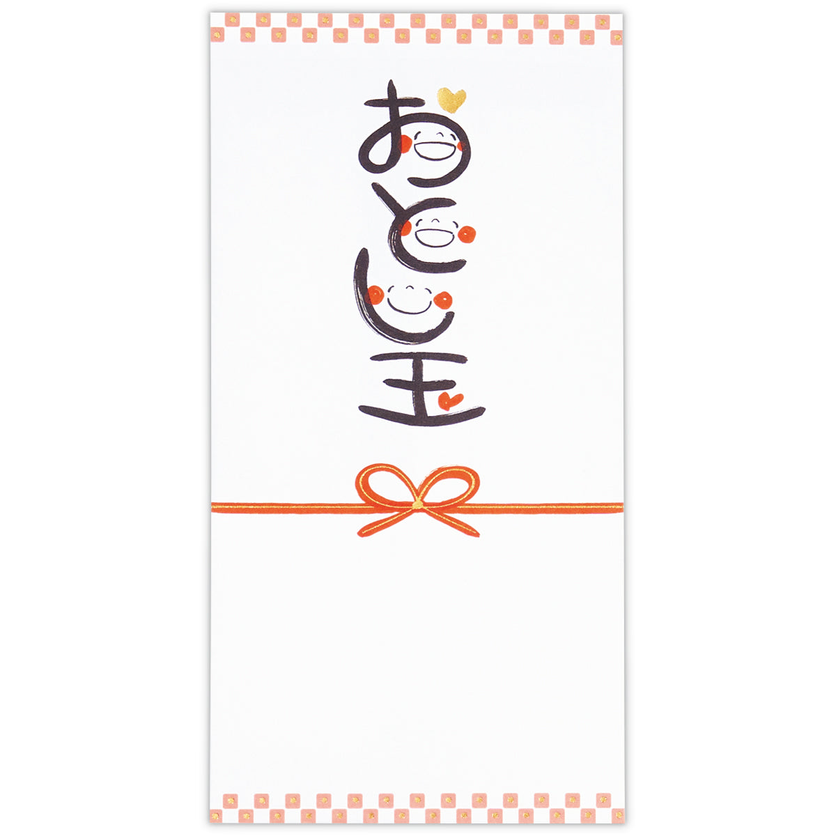 お札を折らずに入れられるお年玉袋です。満面笑顔の筆文字「笑い文字」が明るい気持ちにさせてくれます。封をするときに役立つ金封シール付き!
