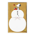 スヌーピーと一緒にお年玉をプレゼント! 金箔加工により新年の明るくおめでたい雰囲気を演出しました。
