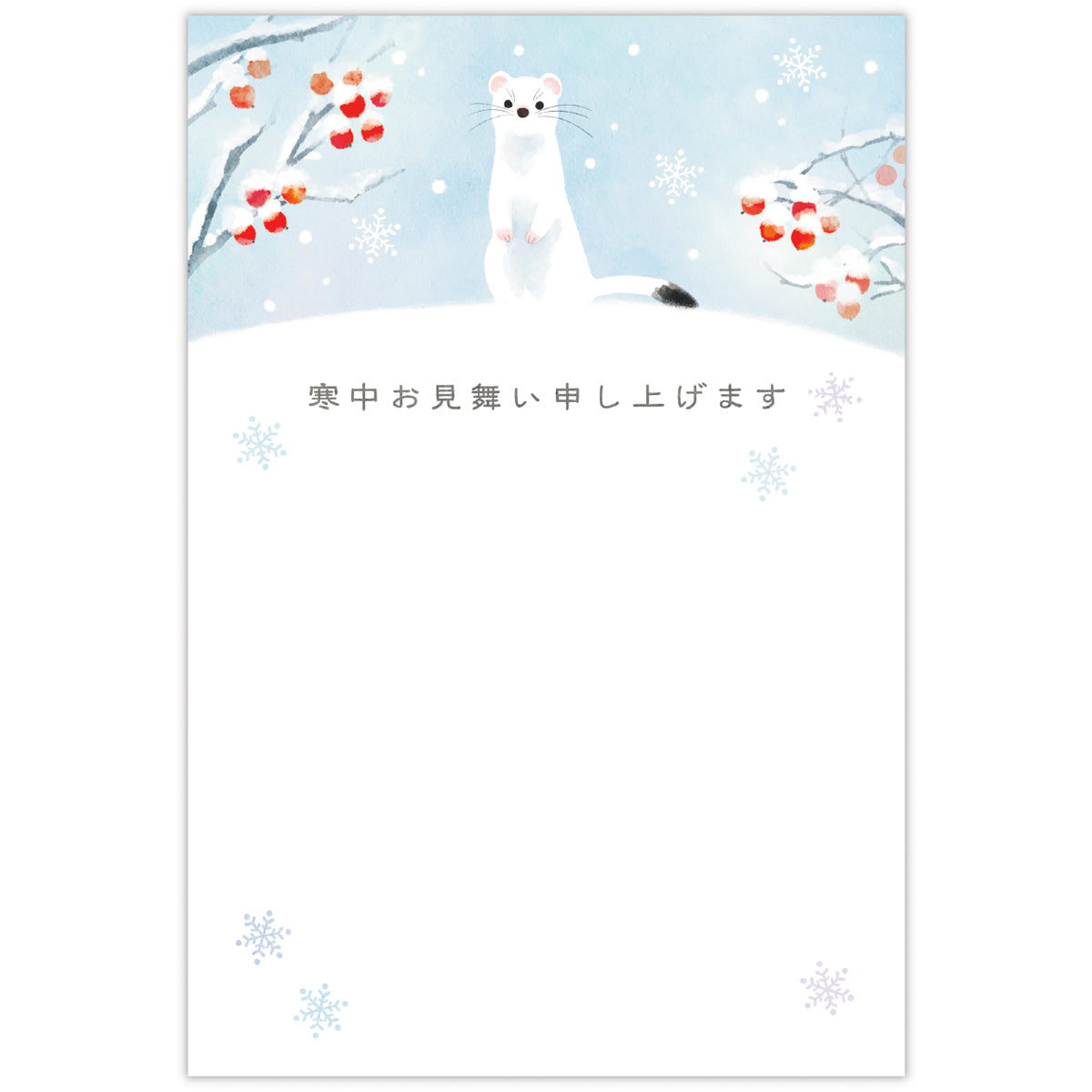 オコジョ【寒中見舞いはがき|1柄6枚入り|インクジェット対応】