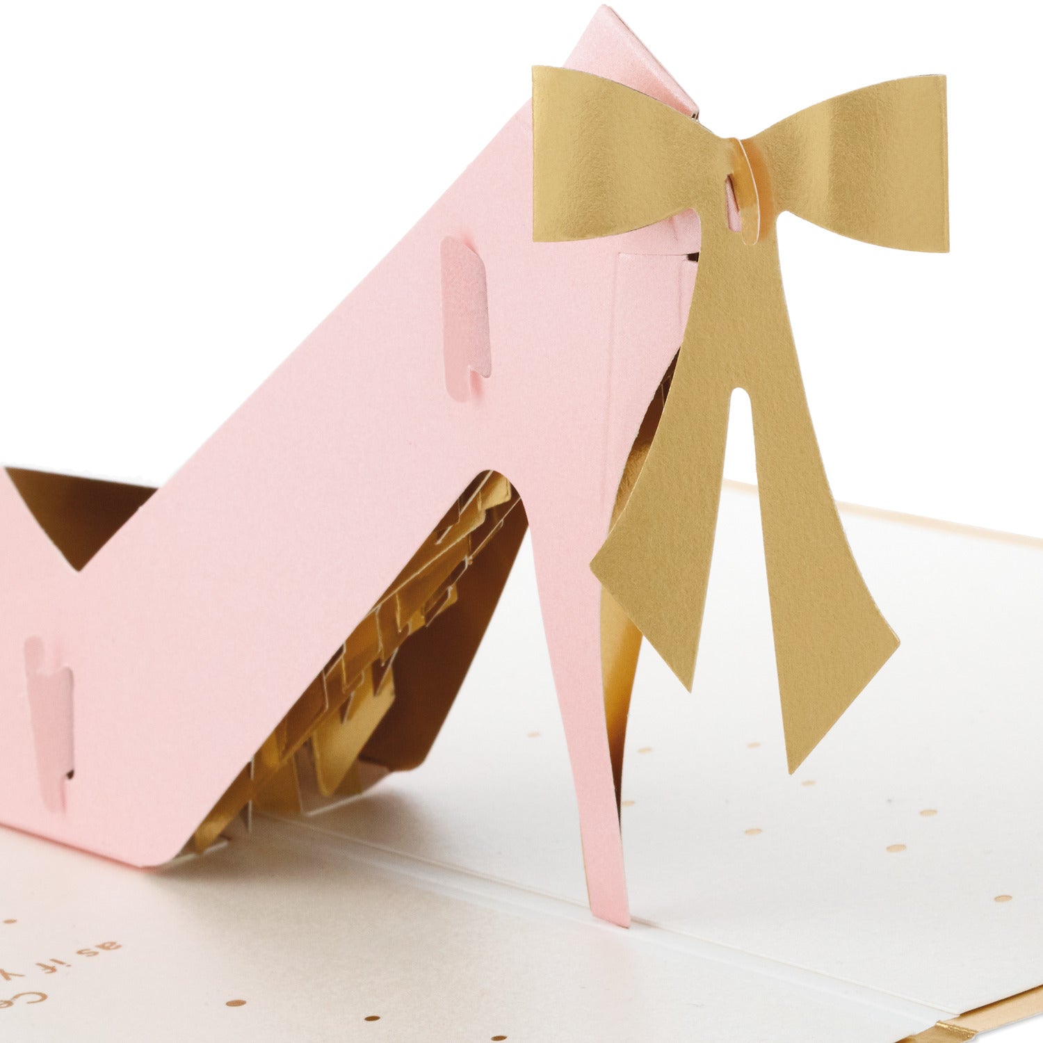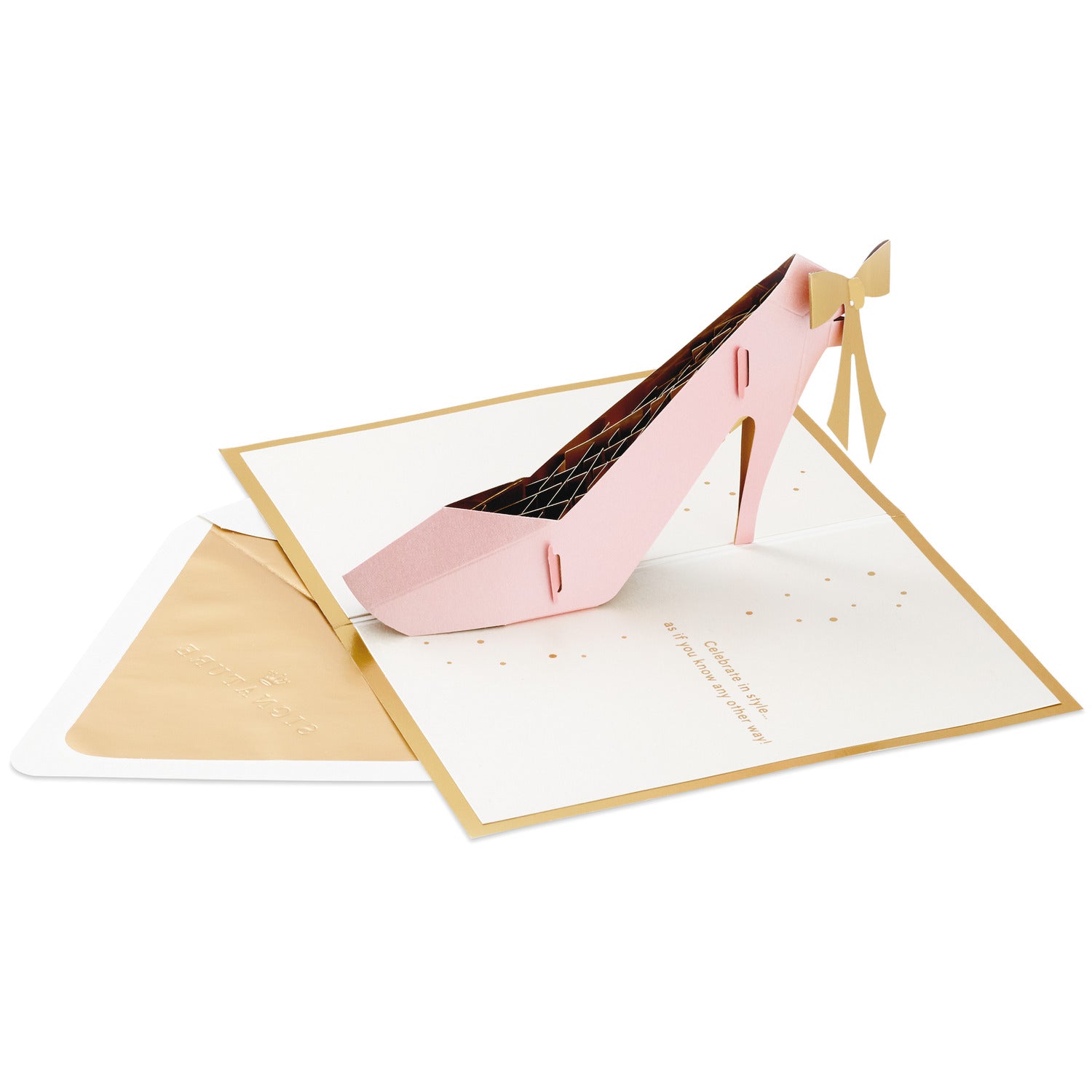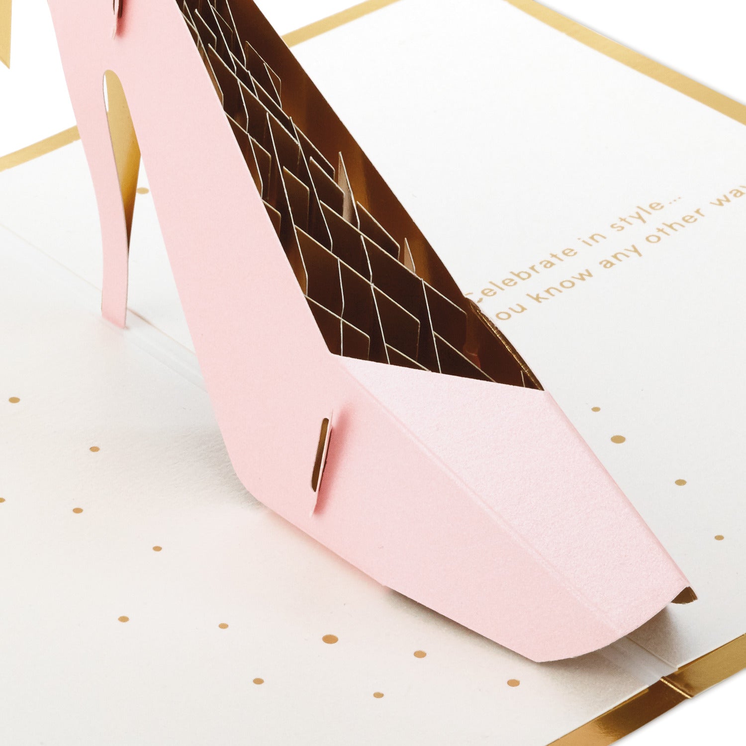 おめかしして祝おう…だってそれ以外ないでしょ?ピンヒールのパンプスが表れるユニークな3D立体バースデーカードです。おしゃれが好きな方へのお祝いに。