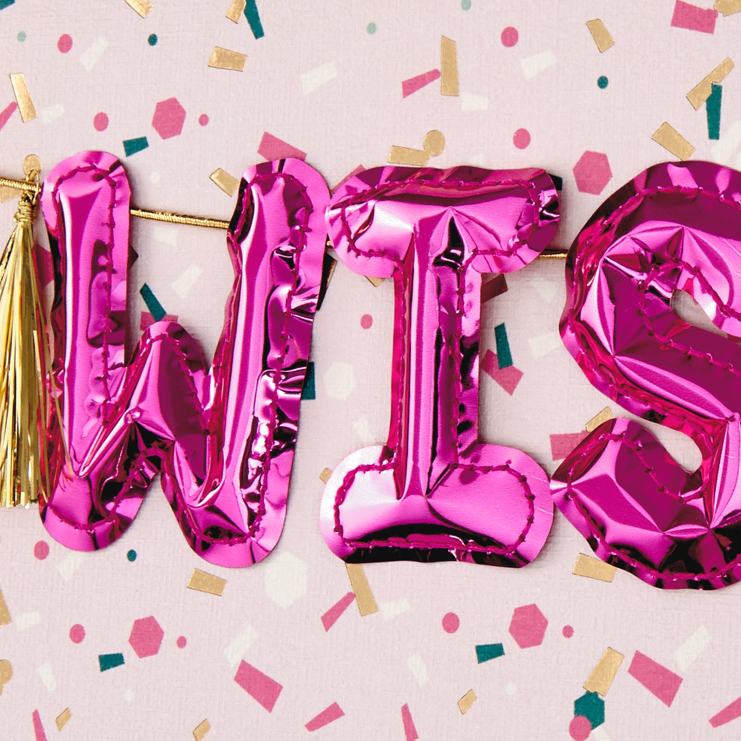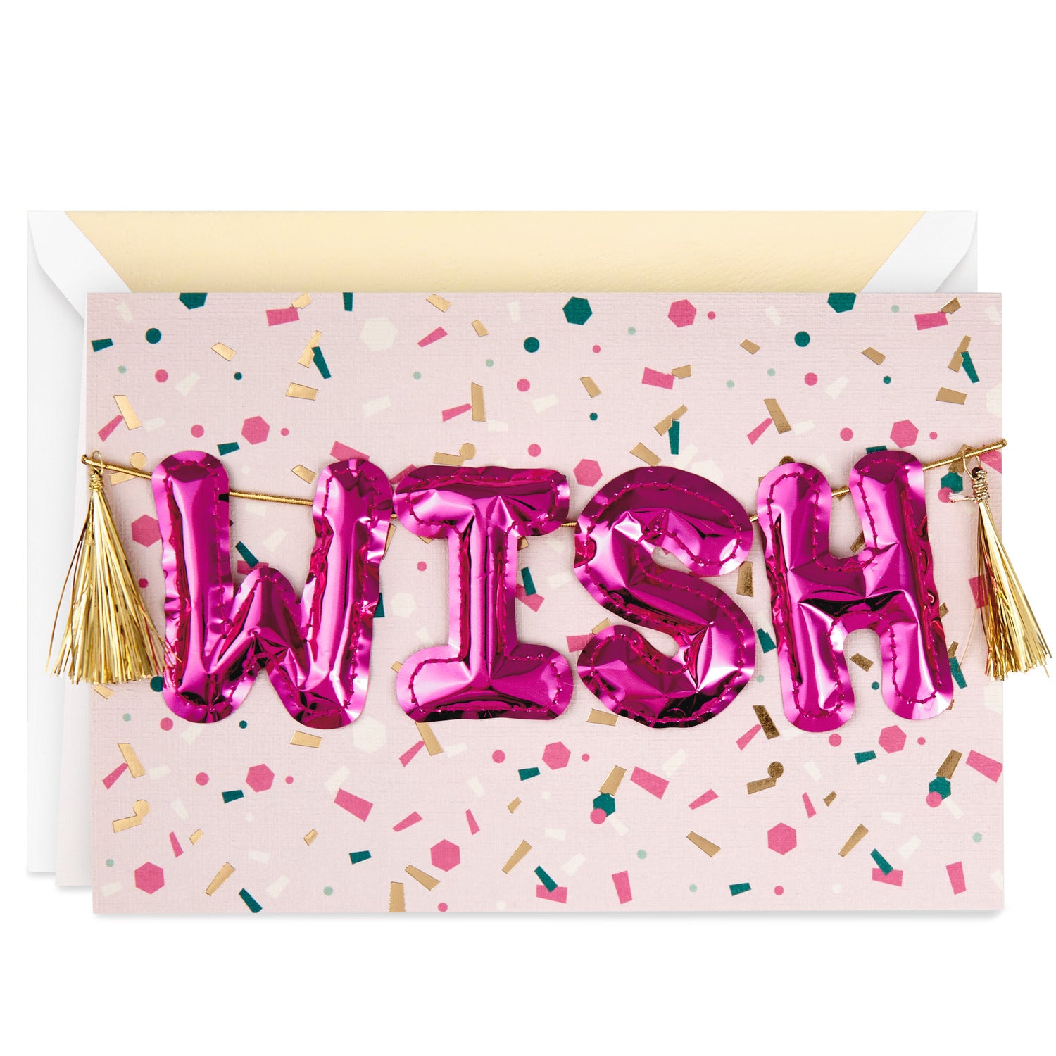 WISH pink balloon Happy Birthday Card【誕生お祝い/Signature】
