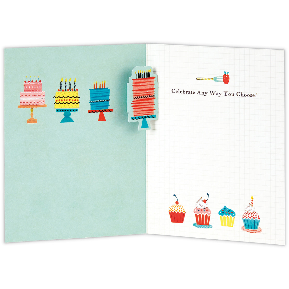 お相手に合わせて選ぶのが楽しくなる、これまでのラインナップにはないユニークなモチーフのカードが仲間入り。カラフルなバースデーケーキやカップケーキをたくさん並べた可愛らしいバースデーカードです。