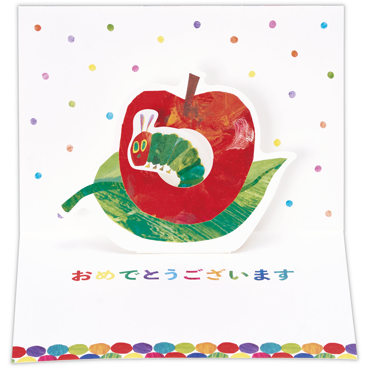 世界中で愛されているエリック・カールの代表作『はらぺこあおむし』が、色彩豊かなグリーティングカードになって登場! カードを開くと、あおむしがりんごからひょっこり顔を出す可愛らしい姿がポップアップします。