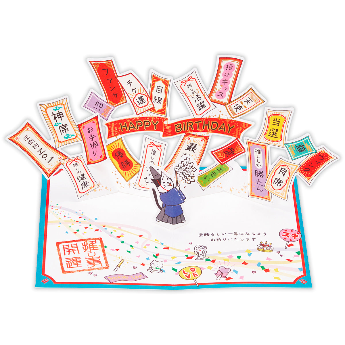 誕生日のお祝いと一緒に推し活の成功を後押ししてくれる、推しがいる人にぜひ贈りたいバースデーカード。いろんな願いを込めたお札や、ペンライト、アクスタなど細かく描かれたモチーフにもご注目ください。