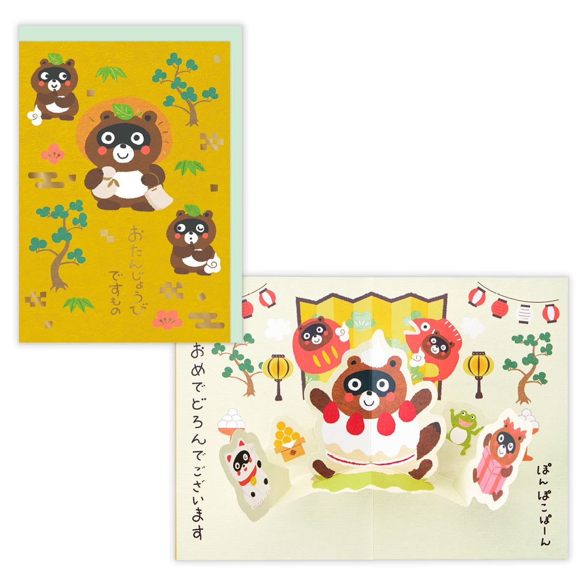 きつねとたぬきのサプライズ!​ 化けるのが大好きなきつねとたぬきが、いろいろなものにどろんと変身してメッセージを届けてくれる「コンポコどろん」シリーズ。​化けるのにちょっぴり失敗してしまうところが可愛らしいポイントです。