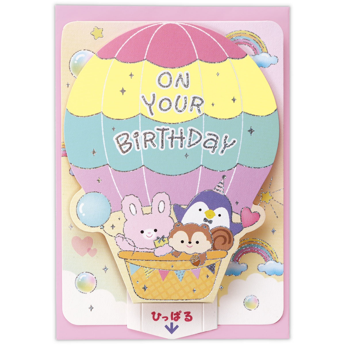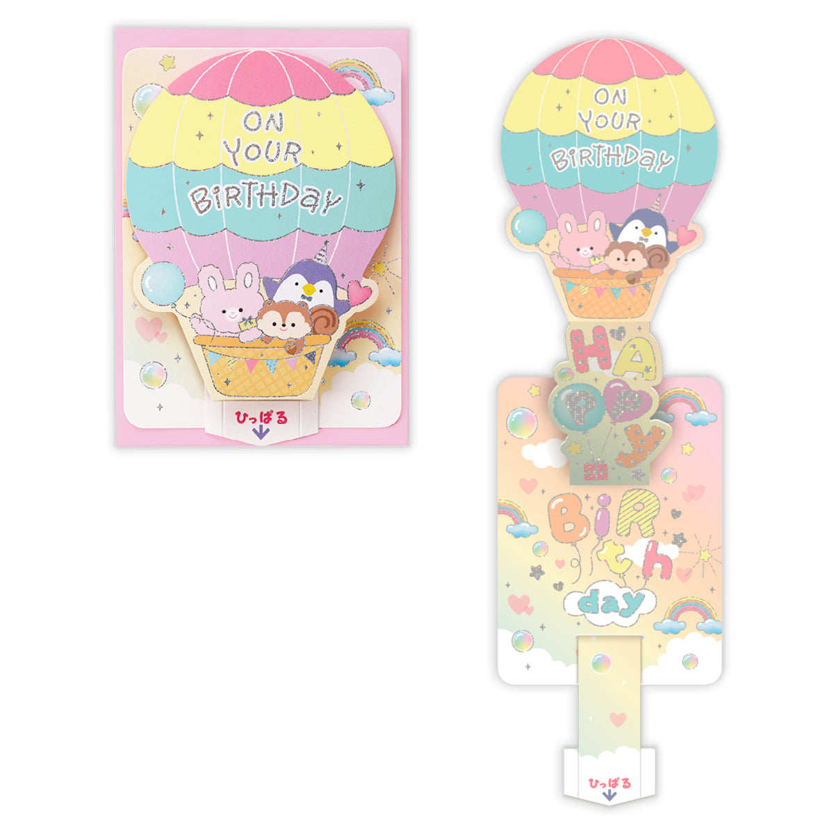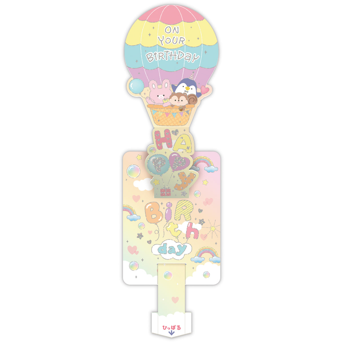ひっぱるバースデー 気球【誕生お祝い/立体カード】