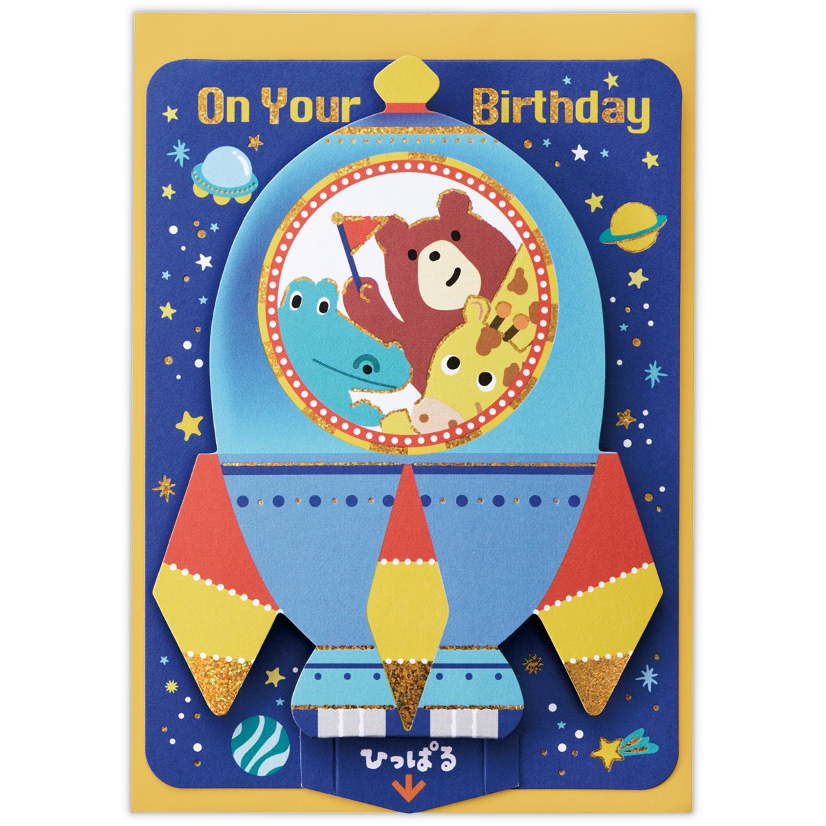 ひっぱるバースデー ロケット【誕生お祝い/立体カード】