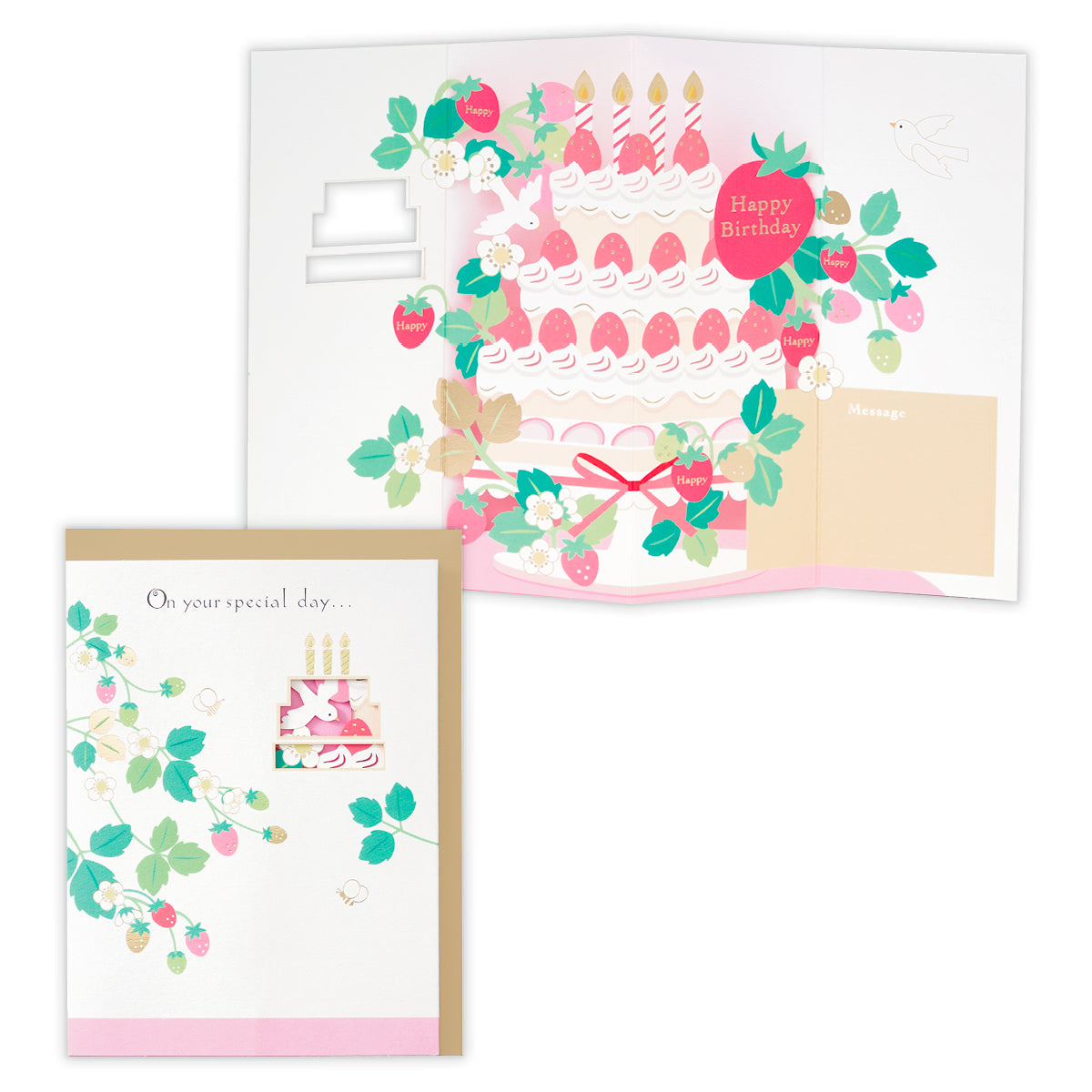 ハッピーいちごケーキ【誕生お祝い/立体カード】