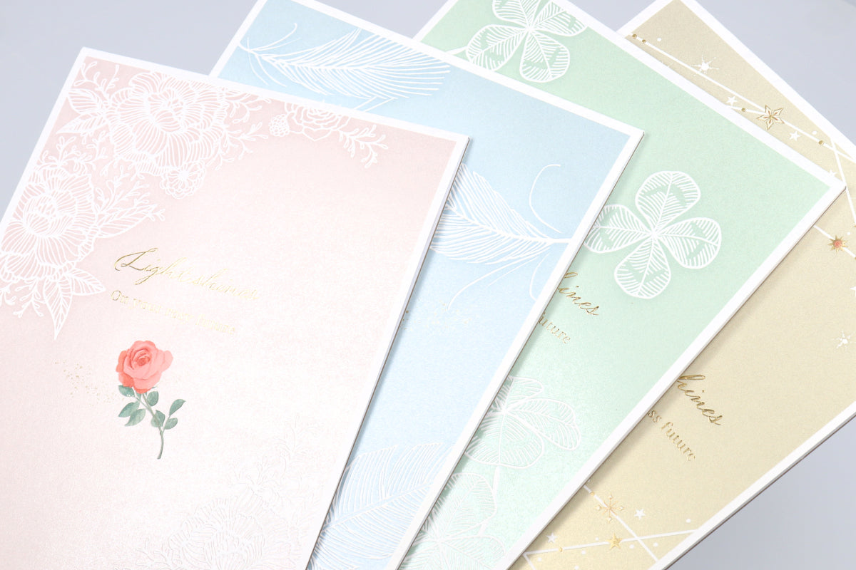 “あなたの未来に明るい光が差しますように”という幸せへの願いを込めたプレミアムレターシリーズ「Light shines(ライトシャインズ)」。ブロンズ加工やエンボス加工を施した贅沢な仕上がりをお楽しみいただけます。