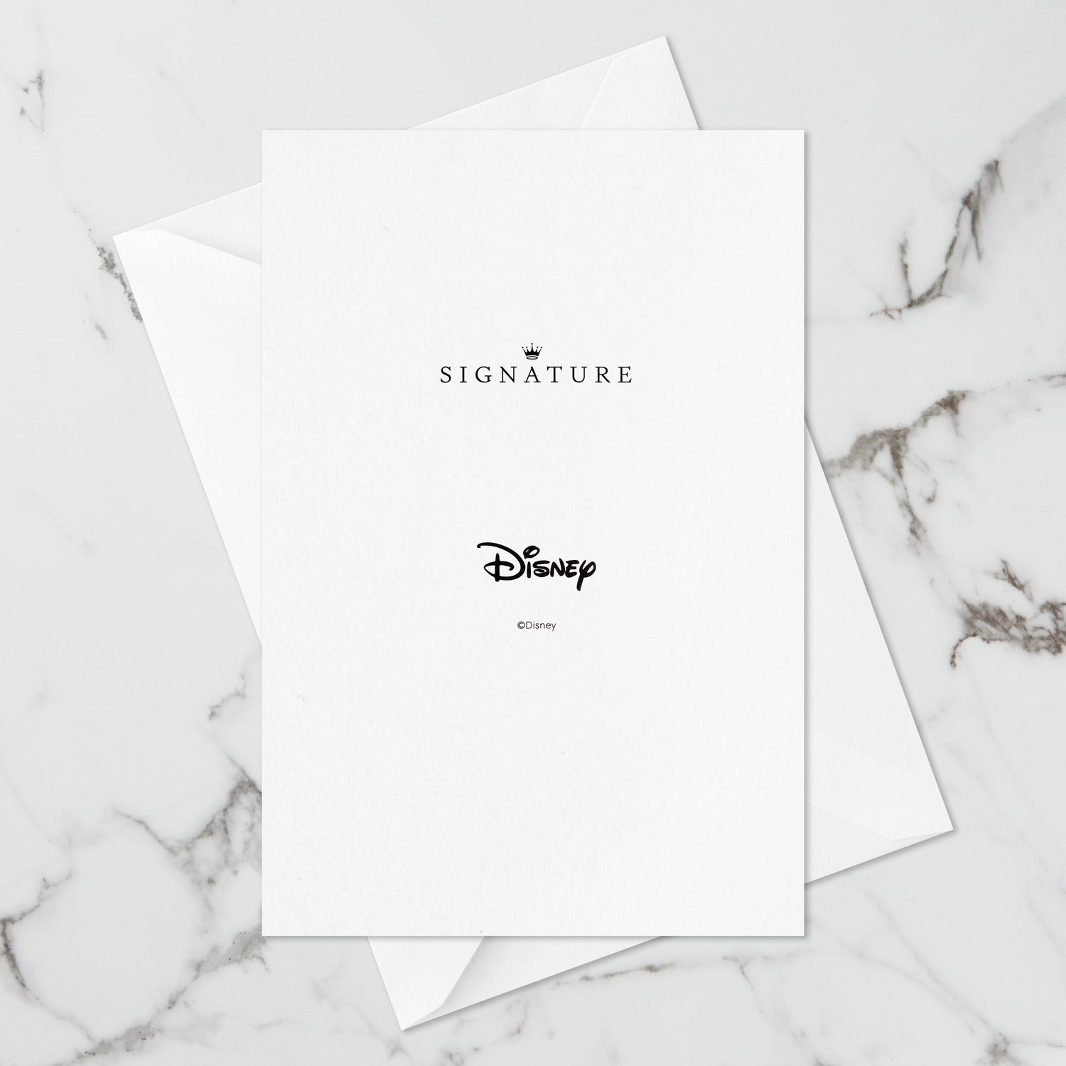 ハートのアイコンと「Love You」のメッセージ、そして光沢のあるピンクの箔の縁取りが特徴のポップアップグリーティングカード。中には、レーザーカットで精巧に作られた、ディズニー映画『わんわん物語』のスパゲティ・ディナーでのキスシーンが飛び出す仕掛けが施されています。