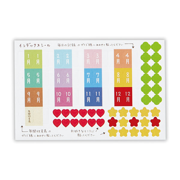 ●サイズ:210×148mm●本文64ページ(フルカラー印刷)●毎日の記録●今月のまとめ●年間収支表●医療費の記録●贈答品の記録●預金・ボーナスの記録●ローン・借入金の記録●シール付き●カバー(ジッパーポケット付き)