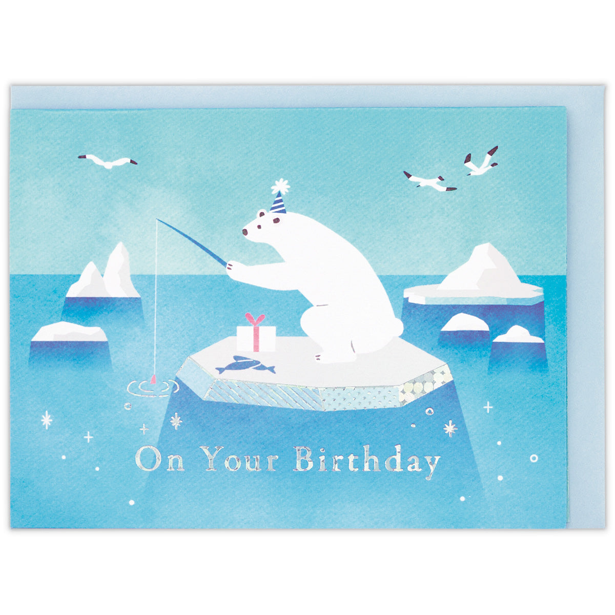 白い動物をテーマに、お誕生日の場面を可愛らしく描きました。男性にも贈りやすいよう爽やかなブルーやミントカラーをチョイスしました。
