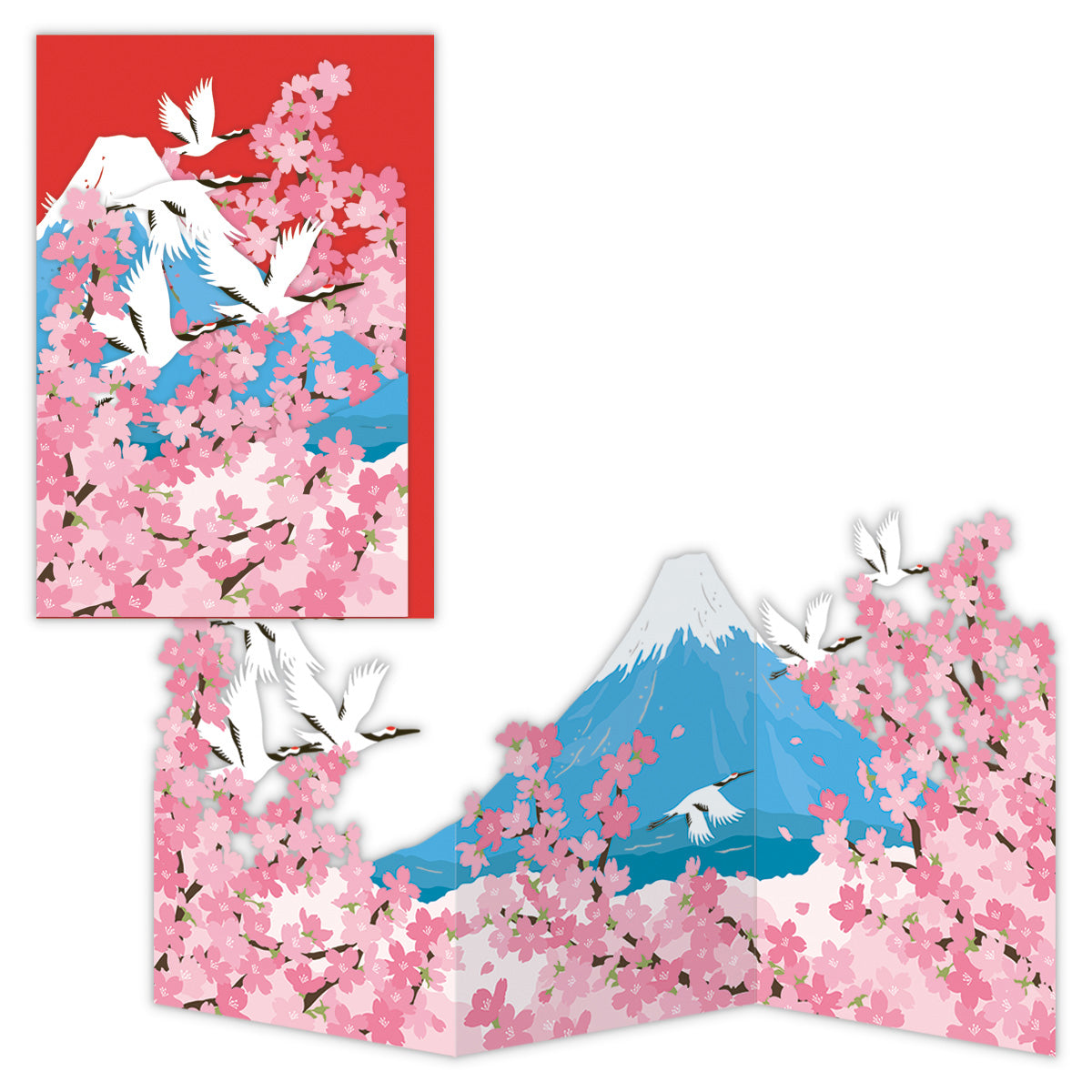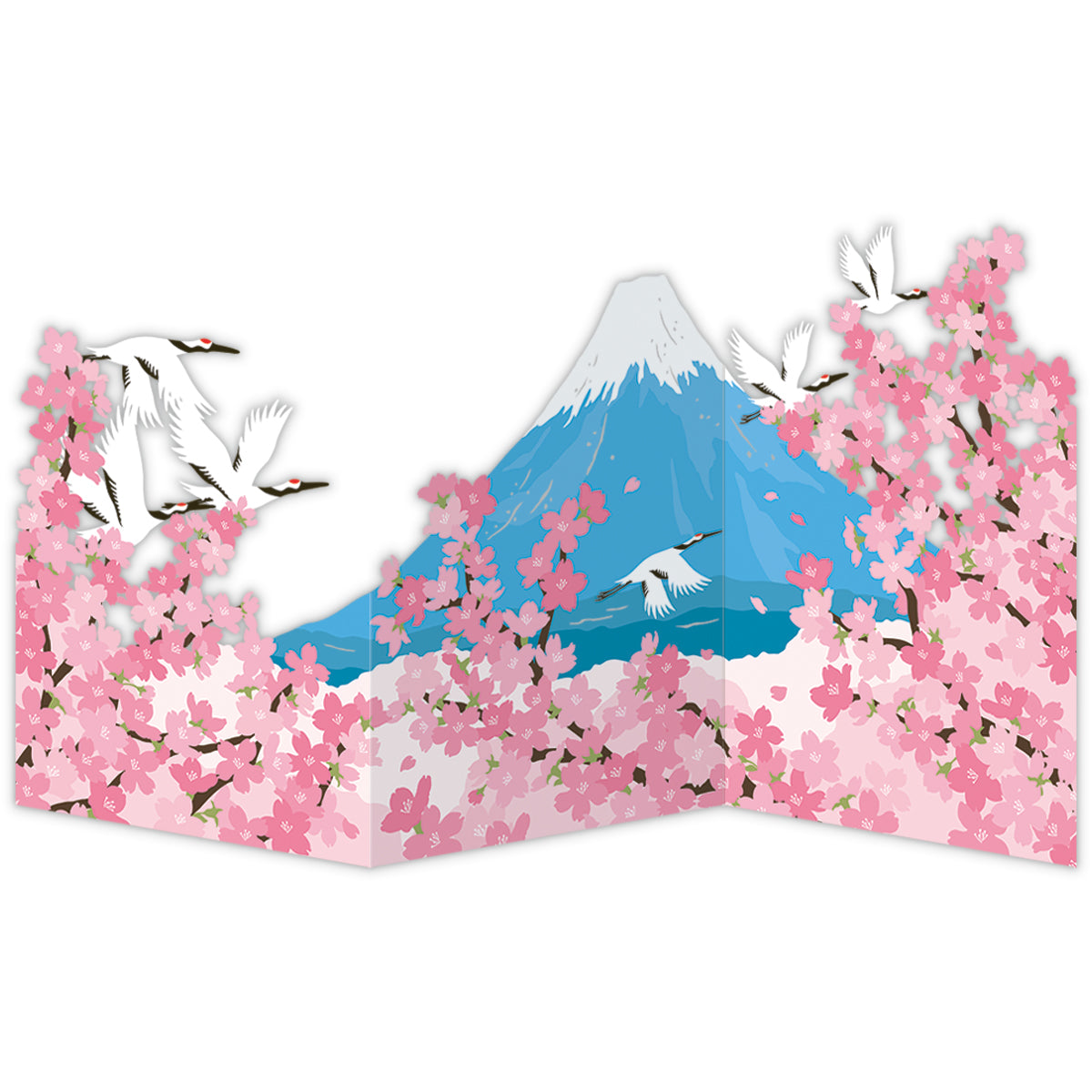 立てて飾れる LG富士と桜と鶴Ⅱ【立体クリスマスカード/レーザーギャラリー】