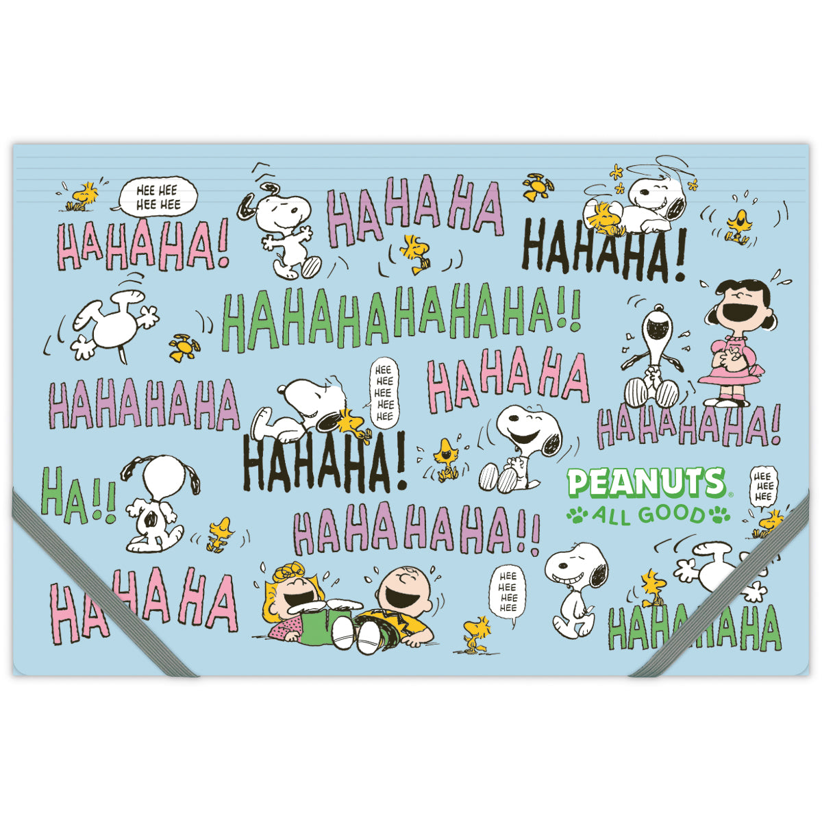 「ALL GOOD すべてよし! 人生で起こるどんなことも良いことだ」をテーマに、人生で起きるどんな状況でもありのままを受け入れ、自分らしく暮らすスヌーピーたちを描いた元気をもらえるコレクションです。60年以上に渡りホールマーク社が制作してきたPeanutsのグリーティングカードの膨大なアーカイブから、ポップでどこか懐かしい60-70年代頃のカラーリングを参考にしました。A4サイズの書類を二つ折りで収納できるコンパクトなA5サイズのクリアフォルダです。書類がちらばるのを防ぐ便利なゴムバンド付き。マチサイズ調整可能。 【ENJOY】楽しむ