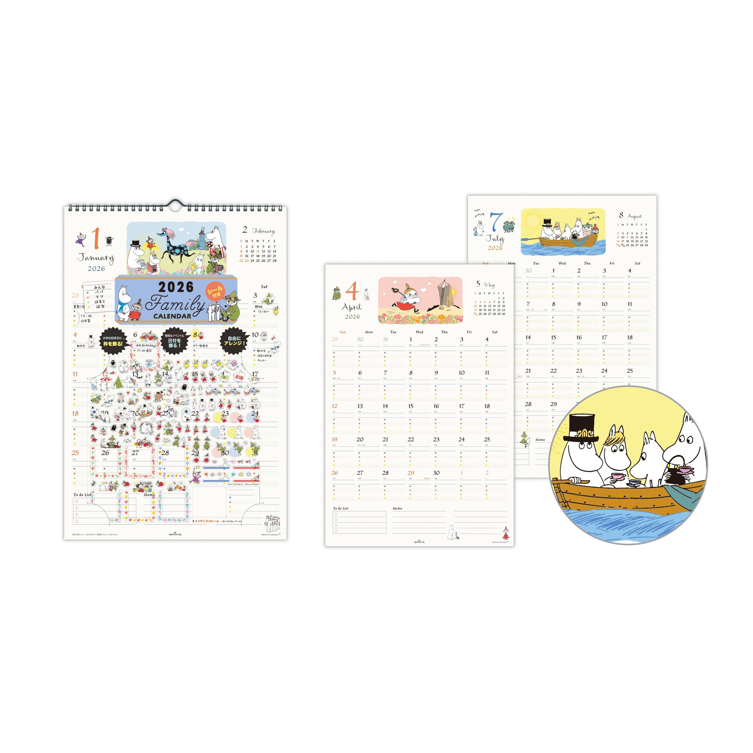 ムーミン【壁掛け|シール付きファミリーカレンダー 2026】