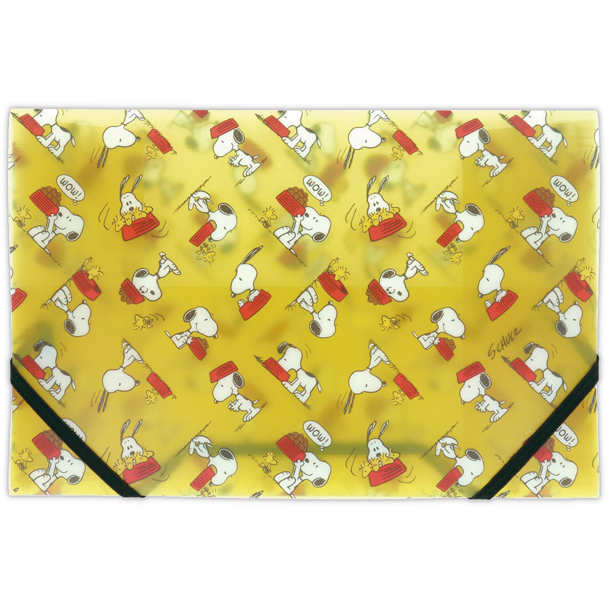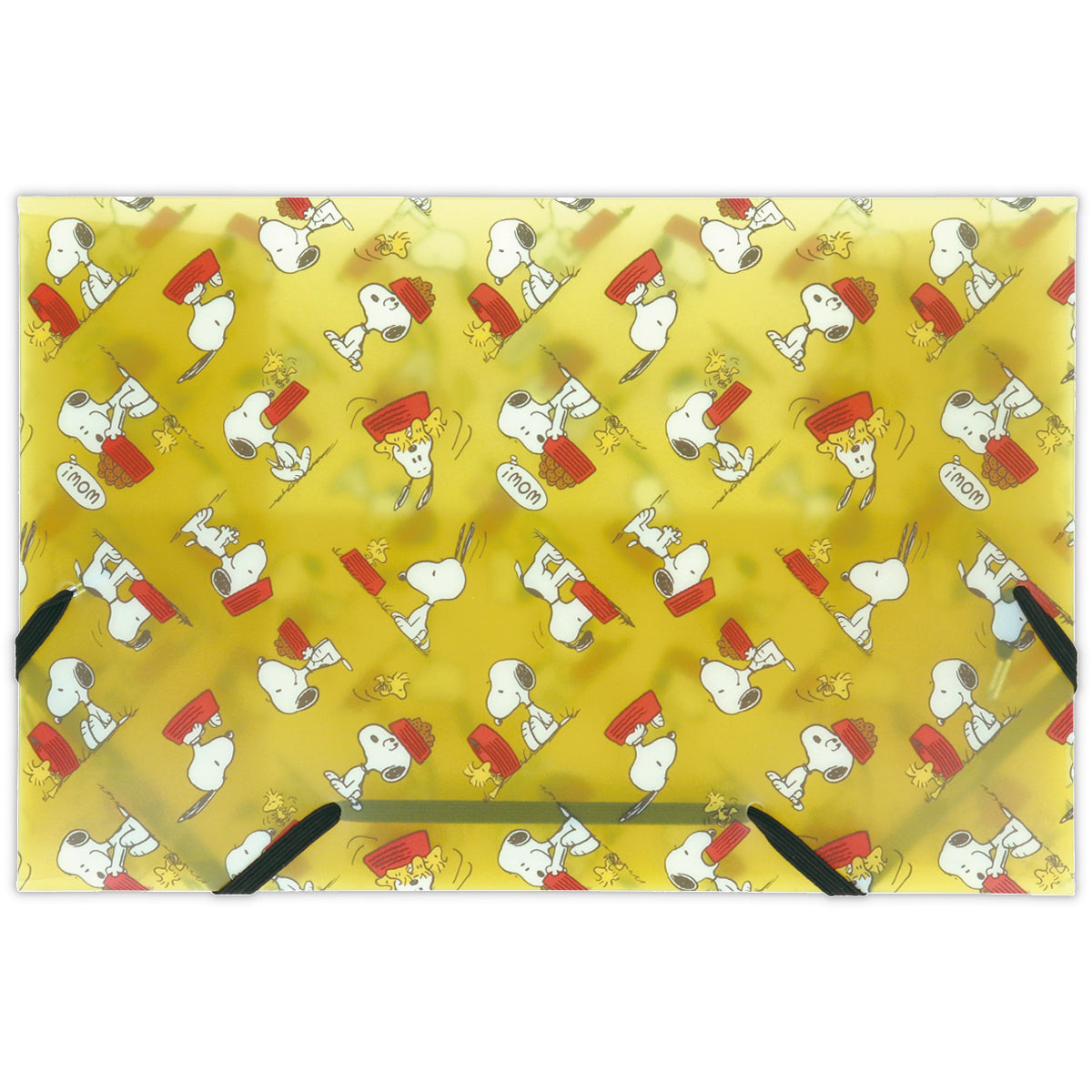 「Happiness is Red スヌーピーの身の回りにある大事な赤いもの」をテーマにしたスヌーピーのステーショナリーコレクション。キャラクターではないけれど、PEANUTSの名脇役ともいえるさまざまな赤いもの。そんな「赤」とともに過ごす、スヌーピーの楽しくて幸せな毎日を切り取りました。表情やポーズが魅力的なスヌーピーのアートを膨大な数のコミックからチョイスしました。A4サイズの書類を二つ折りで収納できるコンパクトなA5サイズのクリアフォルダです。書類がちらばるのを防ぐ便利なゴムバンド付き。 【イエロー】赤いもの:ごはん皿