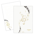 結婚の報告やお世話になった方へのお礼など日常使いとはちょっと違う、かしこまった機会にも、とっておきのお相手へのファンレターにも使えるプレミアムなレターパッドです。ト音記号をメインに、優雅に流れる旋律を鍵盤と五線譜のリボンに見立てたデザインです。パールシルクやエンボス加工を施した贅沢な仕上がりをお楽しみいただけます。