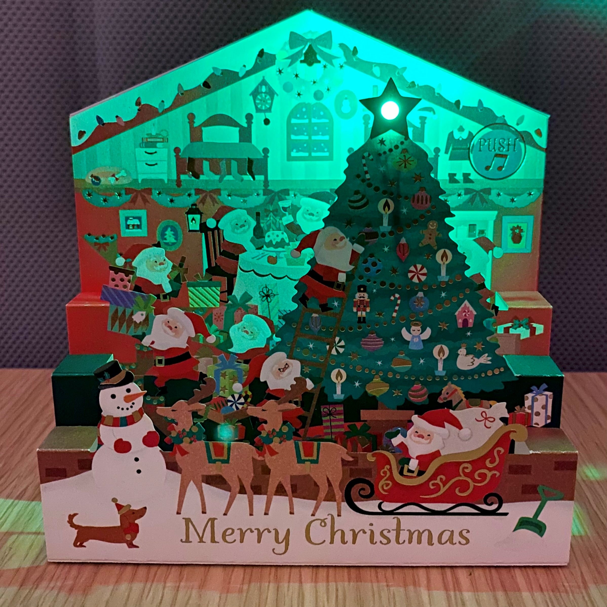 立てて飾れる LEDクリスマスハウス【立体クリスマスオルゴールカード】