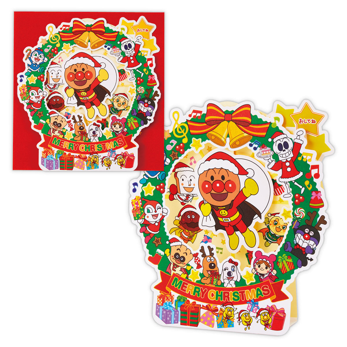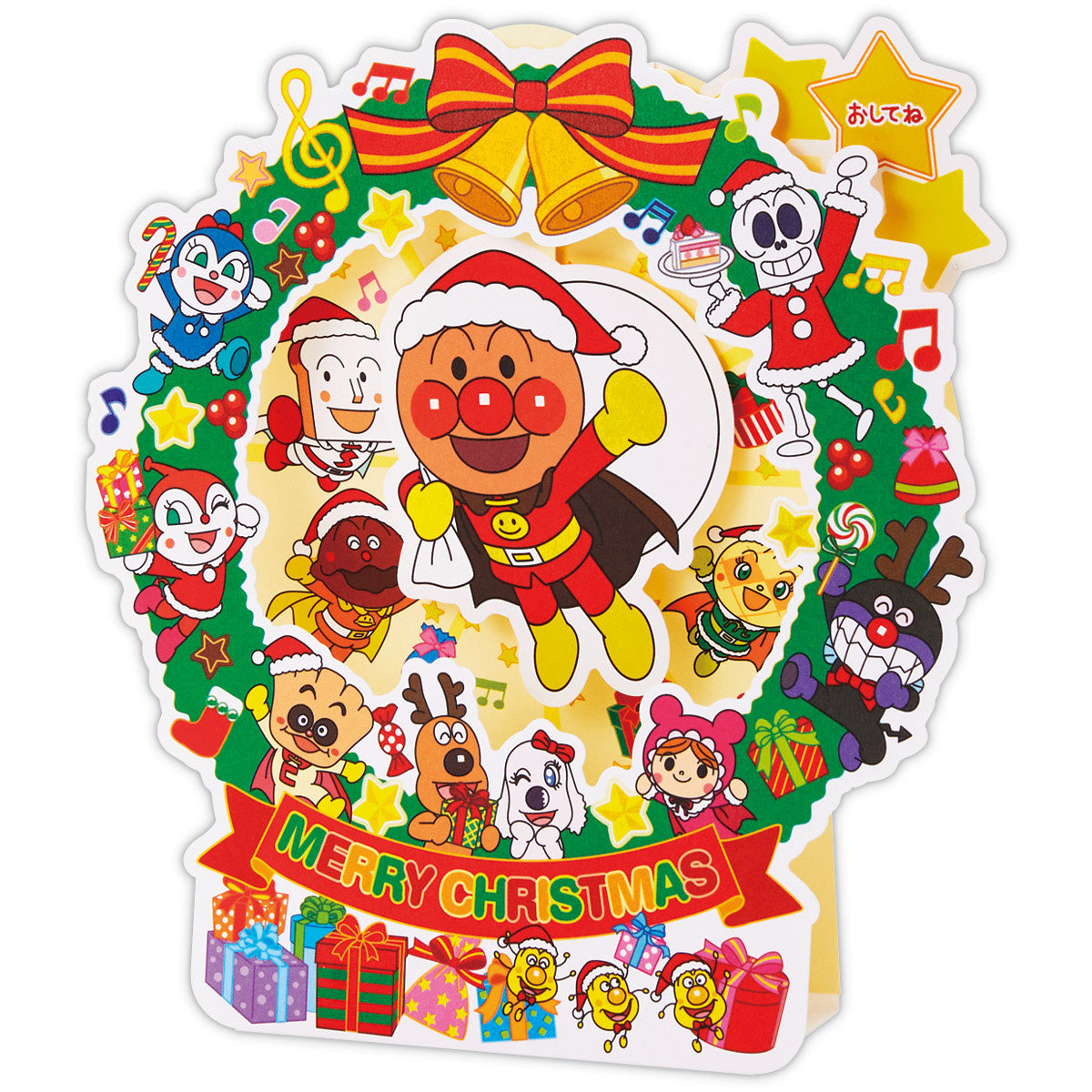 立てて飾れる アンパンマン クリスマスリースⅡ【立体クリスマスオルゴールカード】