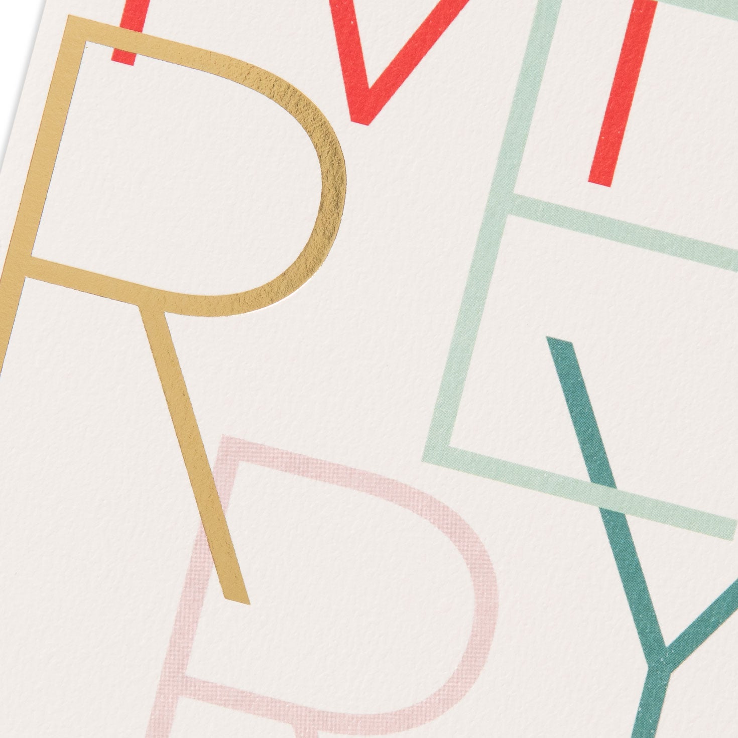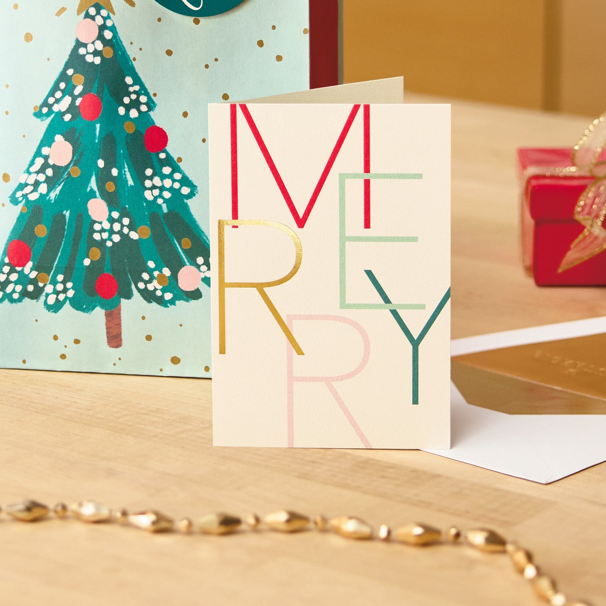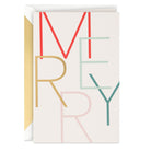大胆でカラフルなレタリングにゴールドの箔がアクセントになったクリスマスカード。ツリーやポインセチアなどのモチーフとはまた違った、クールな印象です。