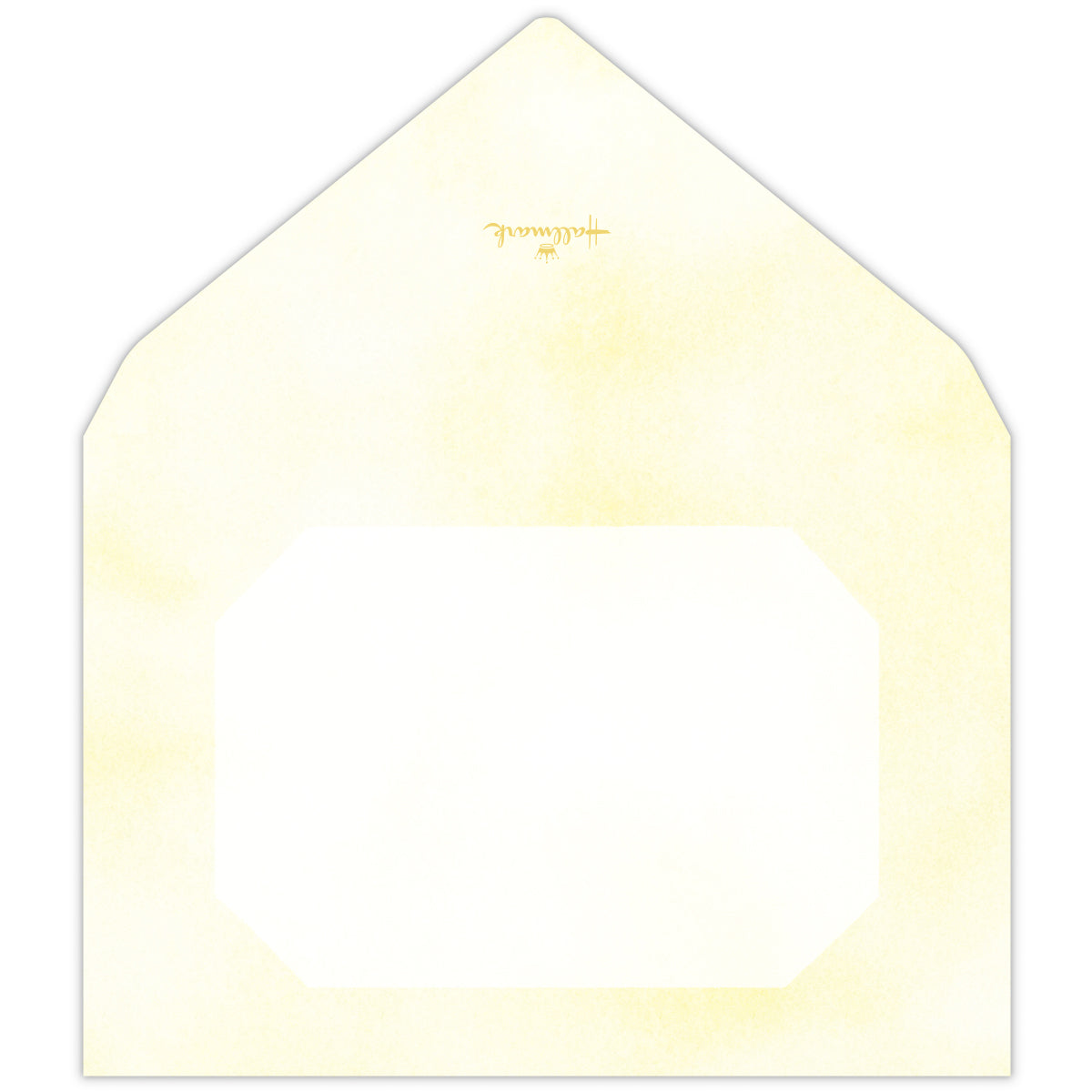 宝石の色味とそこから連想したモチーフを組み合わせ、美しい絵柄に落とし込んだレターセット「レターオブピュアジョイ」。宝石箱を開けた時の喜びをイメージし、封筒の内側にも華やかなデザインを施しました。きらきらと輝くホログラム箔がワンポイントです。