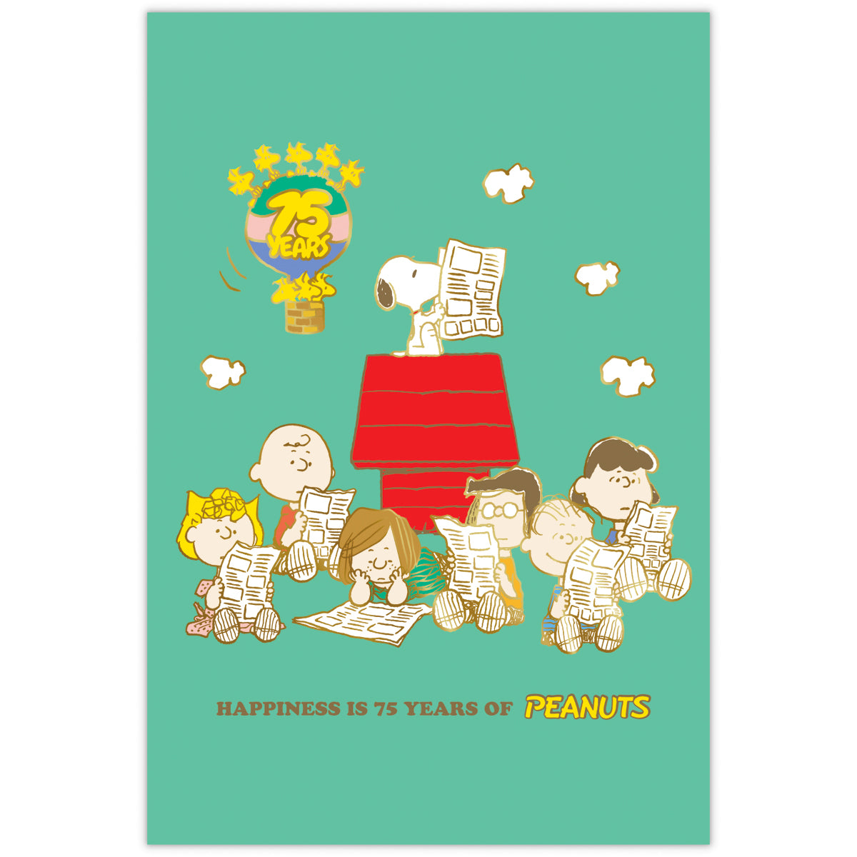 スヌーピー 箔加工 75周年ニュースペーパー【ポストカード/1柄1枚入り/PEANUTS コミック生誕75周年】