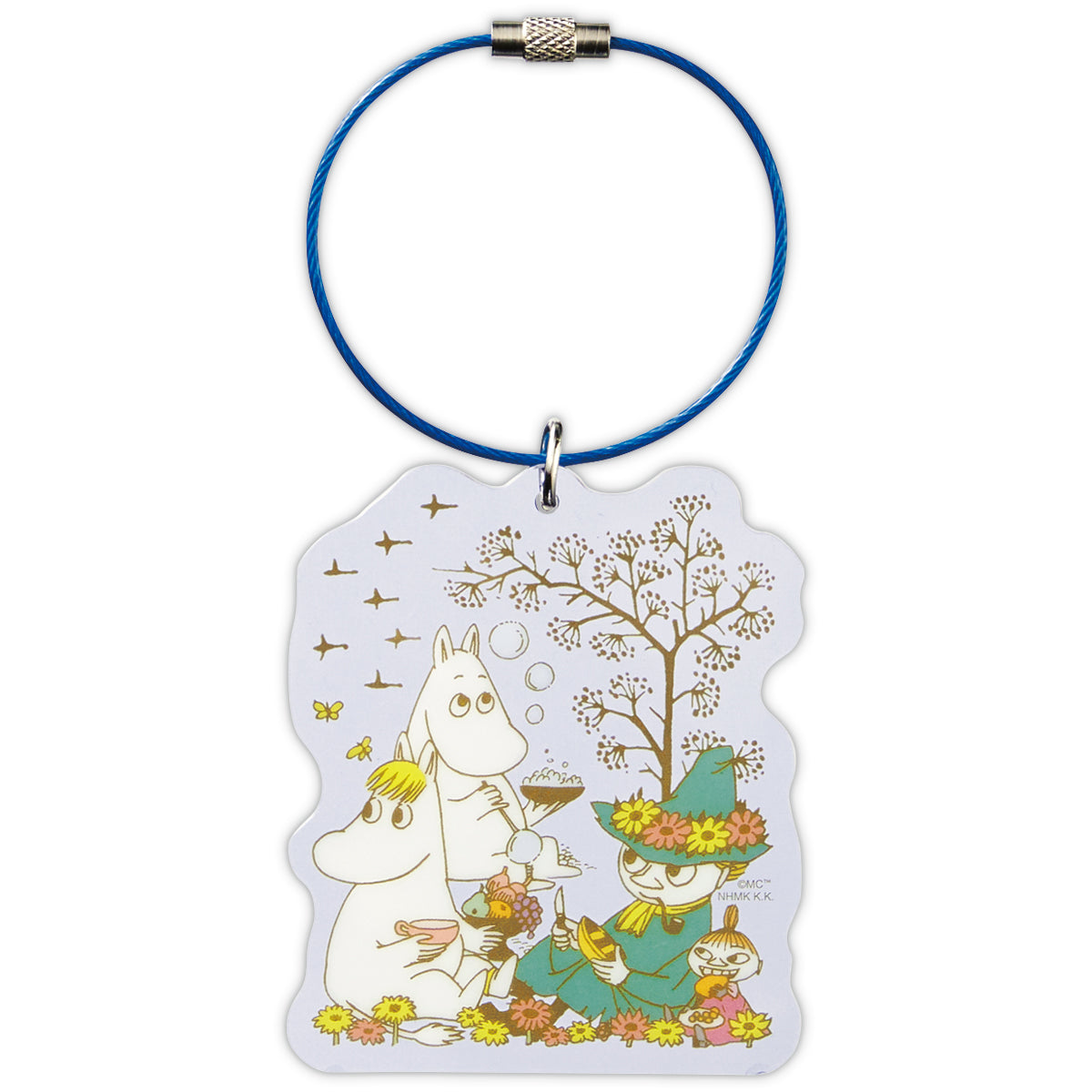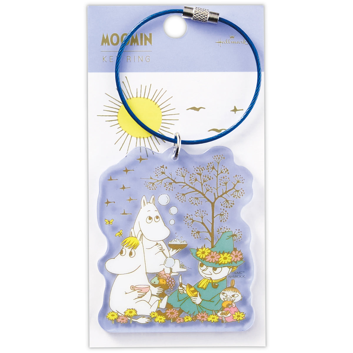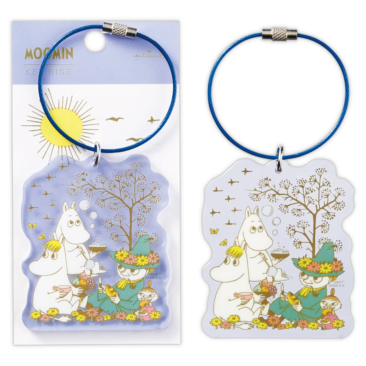 「Happy in Nature」をテーマに、ムーミンと仲間たちが自然と共存して暮らすのどかで美しいムーミン谷での生活を描いたコレクション。明るいトーンの色展開にくすみカラーの主線がオシャレな印象のデザインです。可愛らしいキャラクターのアクリルパーツが付いたワイヤーリング製のキーホルダーです。ワイヤーリングの金属パーツを開閉させて取り付けることができます。【ブルー】テーマ:みんなでティータイム/おしゃべりやお昼寝など思い思いに過ごすティータイムを描きました。