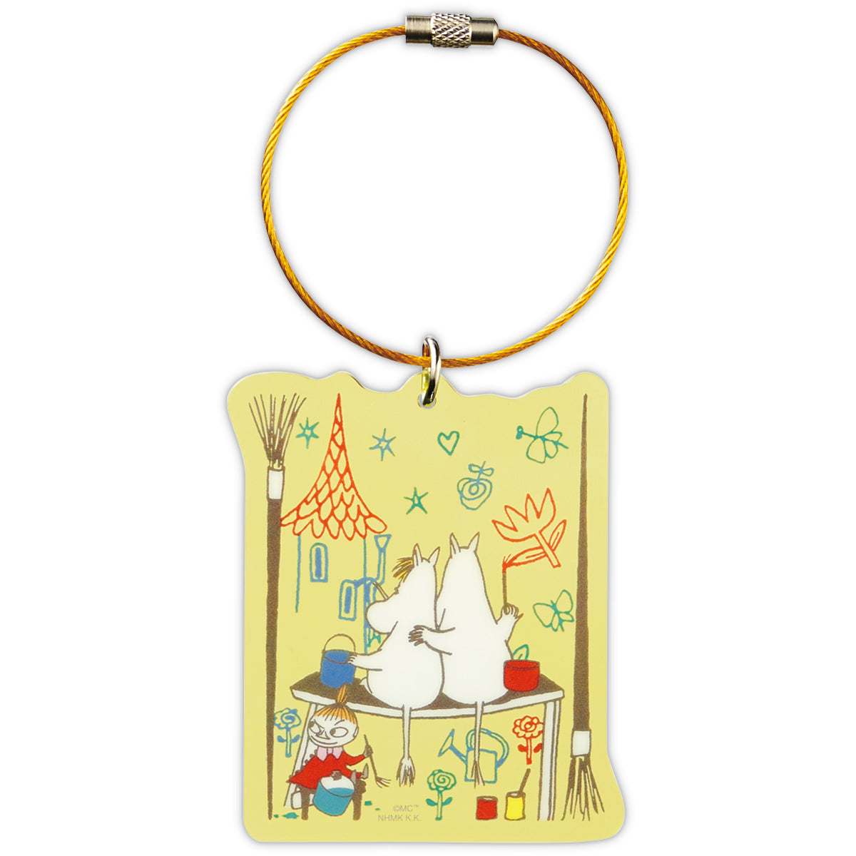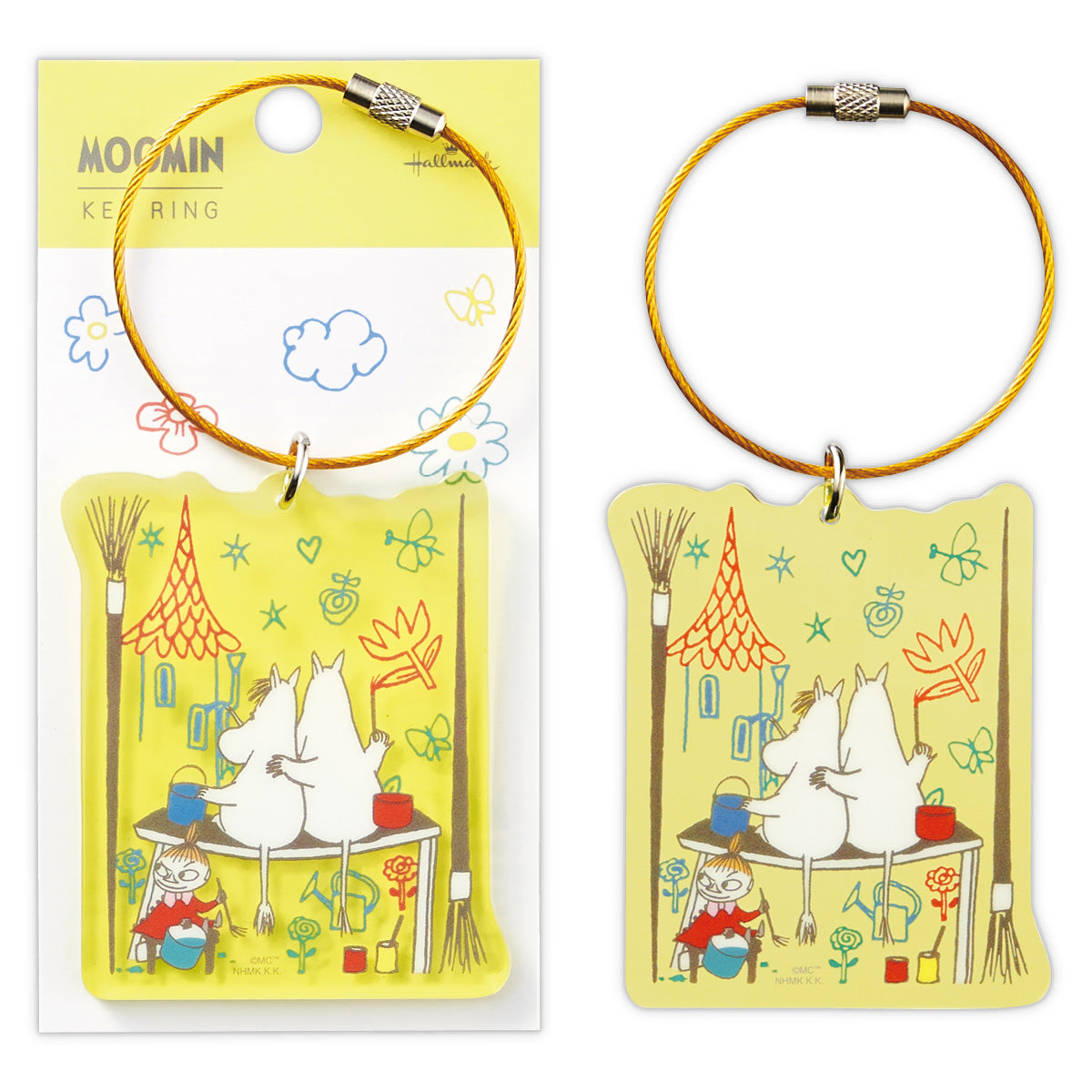「Happy in Nature」をテーマに、ムーミンと仲間たちが自然と共存して暮らすのどかで美しいムーミン谷での生活を描いたコレクション。明るいトーンの色展開にくすみカラーの主線がオシャレな印象のデザインです。可愛らしいキャラクターのアクリルパーツが付いたワイヤーリング製のキーホルダーです。ワイヤーリングの金属パーツを開閉させて取り付けることができます。【イエロー】テーマ:みんなでお絵描き/ムーミン一家が自由気ままにお絵描きを楽しむ様子を描きました。