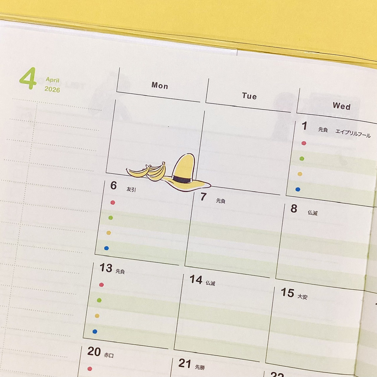 ●サイズ:210×148mm●本文72頁(4色印刷)●2025年12月始まり2027年3月終わり●扉/イヤーカレンダー/イヤリープラン/マンスリースケジュール/各月TO DOリスト/各月メモ/横罫メモ/イベントリスト/医療費の記録/緊急連絡先●カバー(ジッパーポケット・ペンホルダー・ポケット付き)●祝日表記:日本語/六曜・月の満ち欠け付き