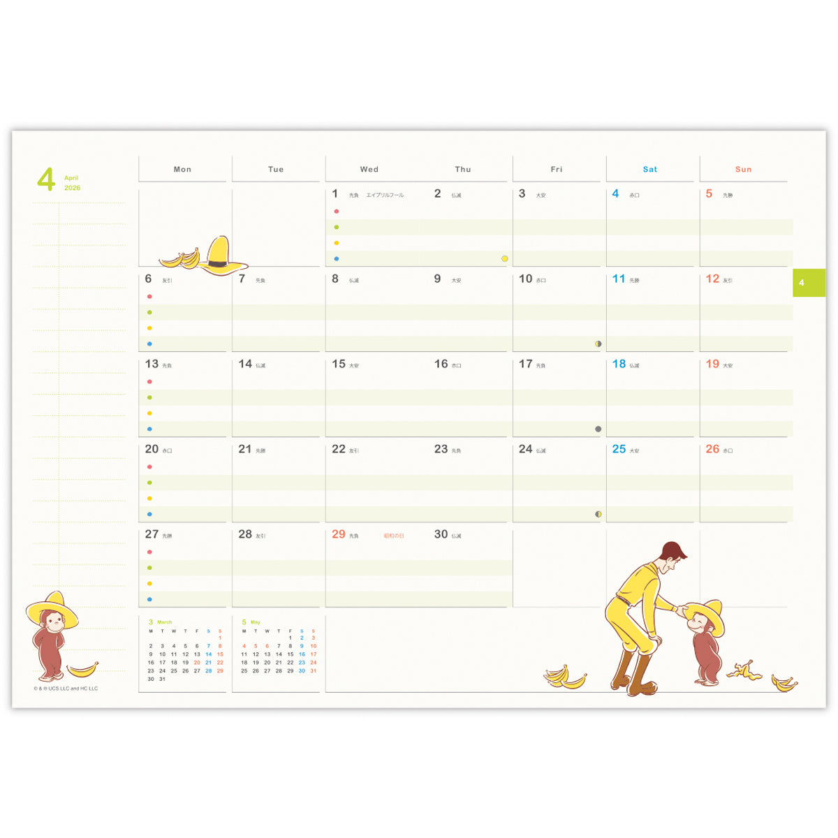 おさるのジョージ【手帳|A5ファミリーダイアリー 2026】