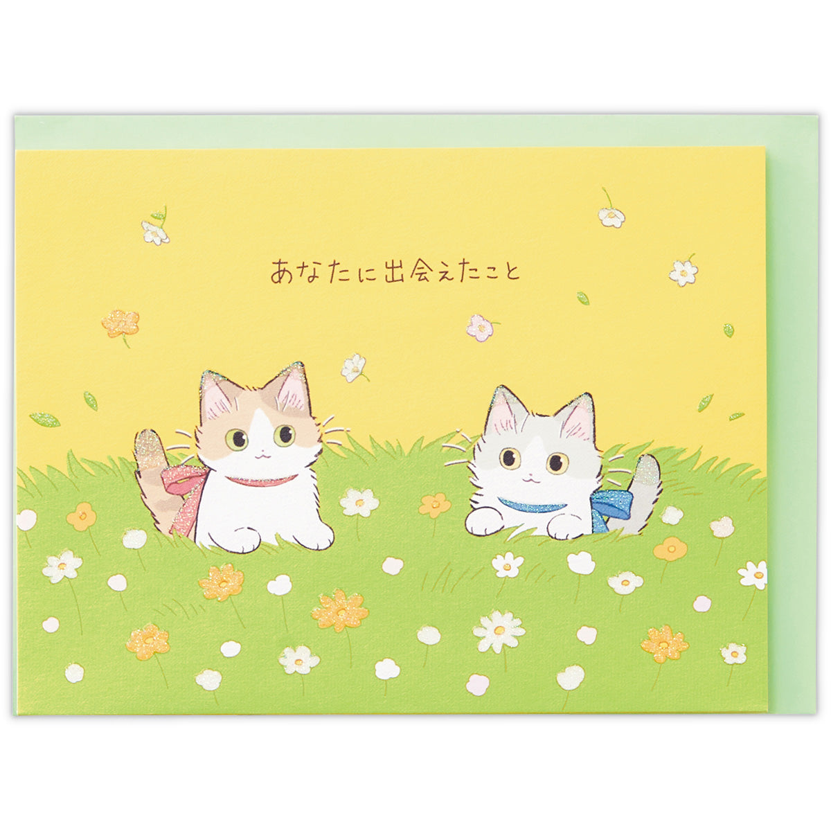 猫の作品で人気のイラストレーター・たたメーピーが手がけるカードシリーズが新登場! いつも頑張るあなたに、ミント色の瞳がチャームポイントの三毛猫・Mint(ミント)が優しい言葉をかけてくれます。
