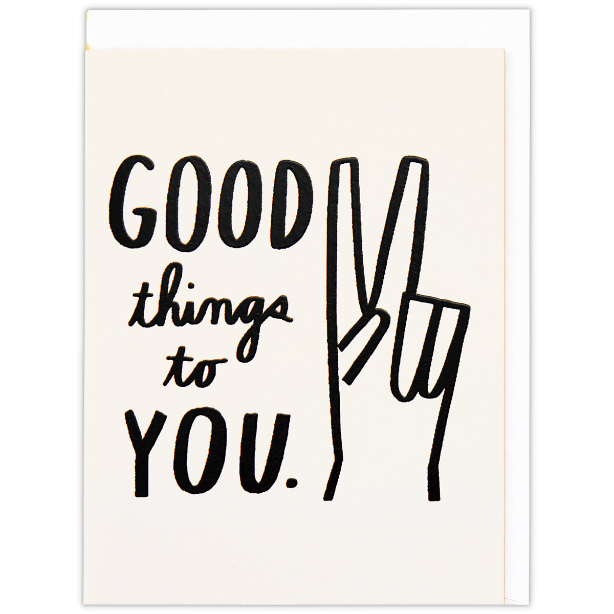 ちょっとひねりのあるデザインが魅力的なZ世代に向けたラインナップ! ピースサインと文字を主役にしたシンプルな多目的カードです。