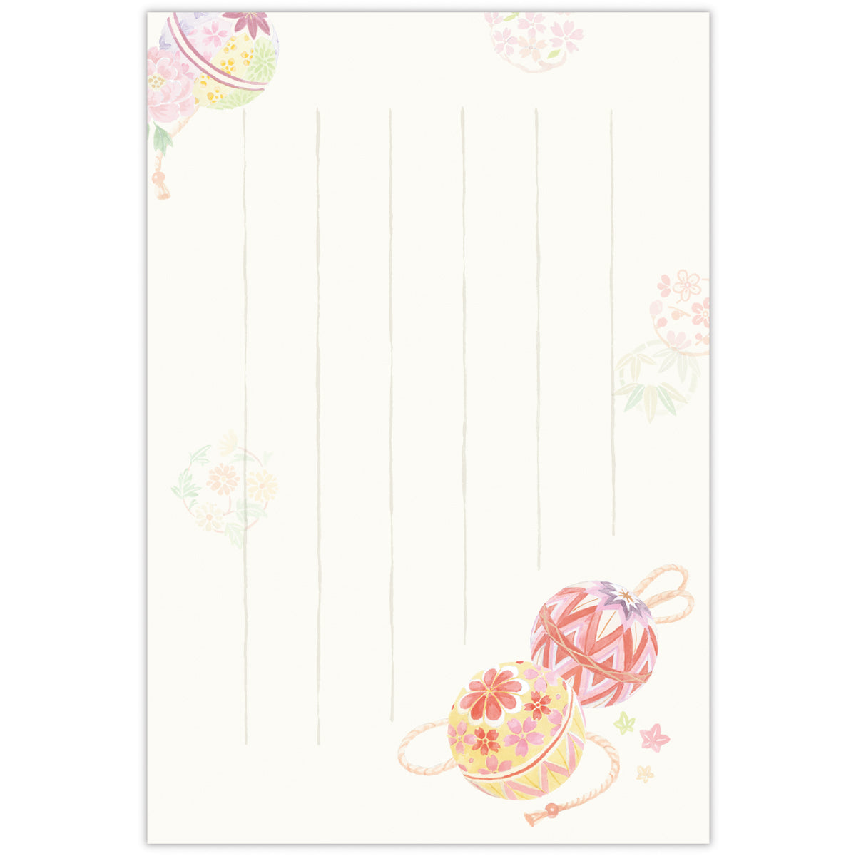彩りてまり【ハガキ箋|タテ罫線|1柄8枚】