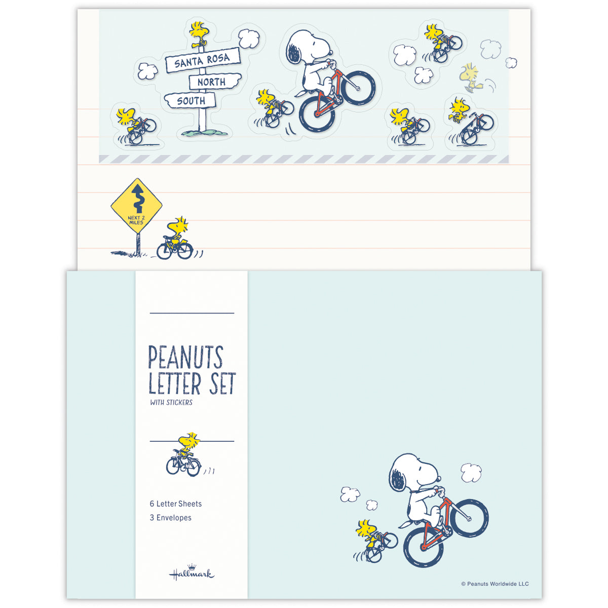 スヌーピー Let's have a HAPPY JOURNEY ブルー 自転車【レターセット|便箋1柄6枚・封筒1柄3枚】