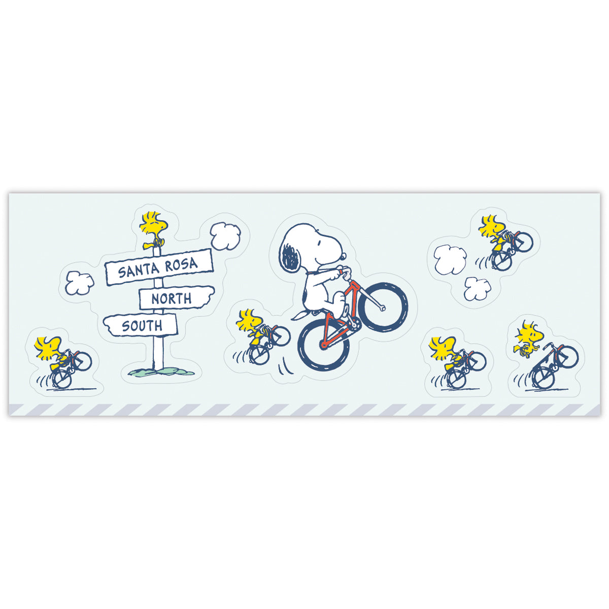 「Let's have a HAPPY JOURNEY ハッピーな旅にしよう」をテーマに、PEANUTSの作者チャールズ M.シュルツが過ごした、サンフランシスコ近郊・サンタローザをイメージした爽やかなスヌーピーコレクション。ホームタウンを楽しむスヌーピーのさまざまな姿を描きました。 【ブルー】自転車