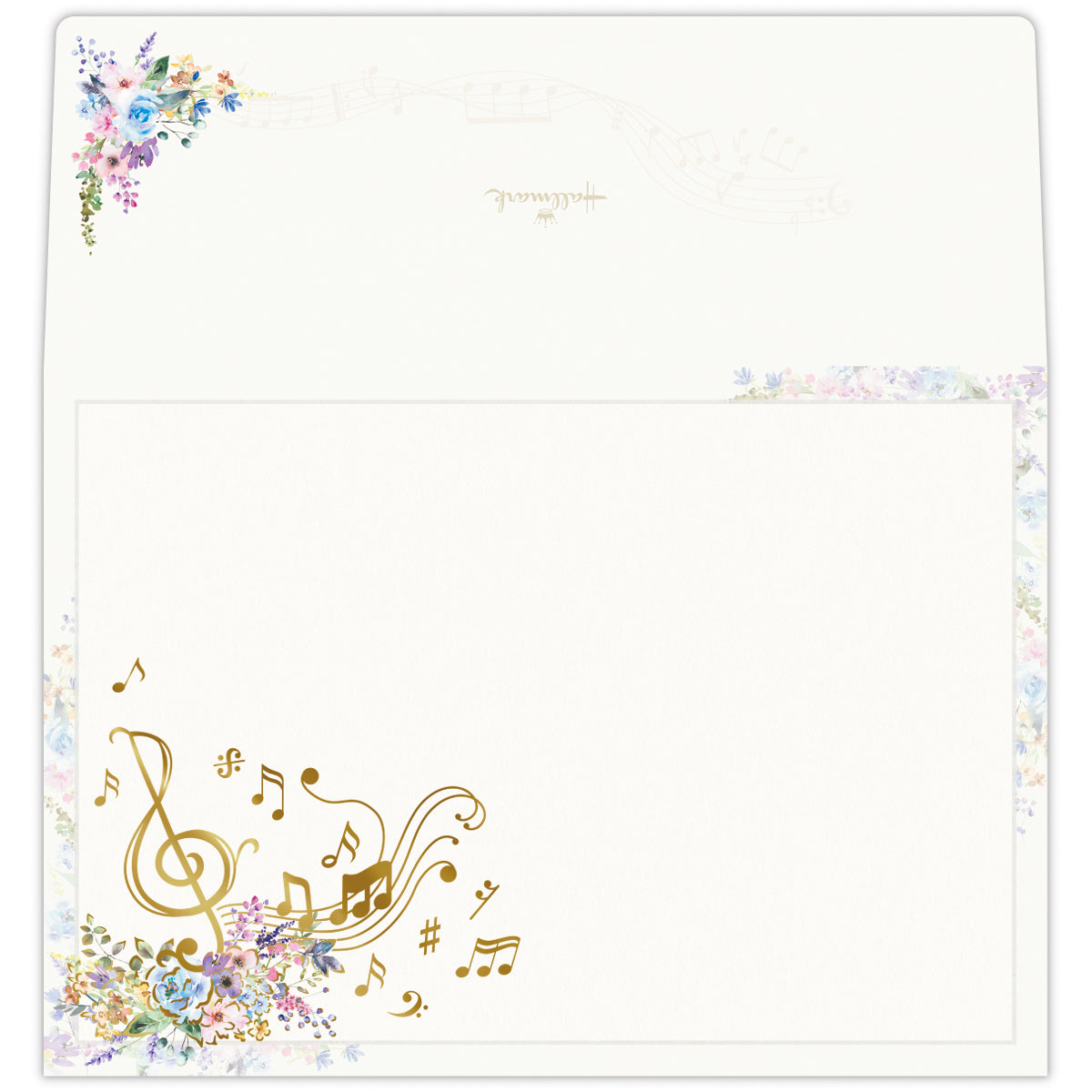 秋から冬にかけて使いやすい落ち着いたトーンのレターコレクション「コンフォート&ピース」。人気の花×音楽柄を、落ち着いたグレイッシュトーンで新鮮な見た目に。特定の楽器ではなく五線譜と音符のモチーフを描くことで、幅広い音楽好きの方に楽しんでいただけるようにしました。マットタイプの金箔加工がシックで繊細な印象を与えます。